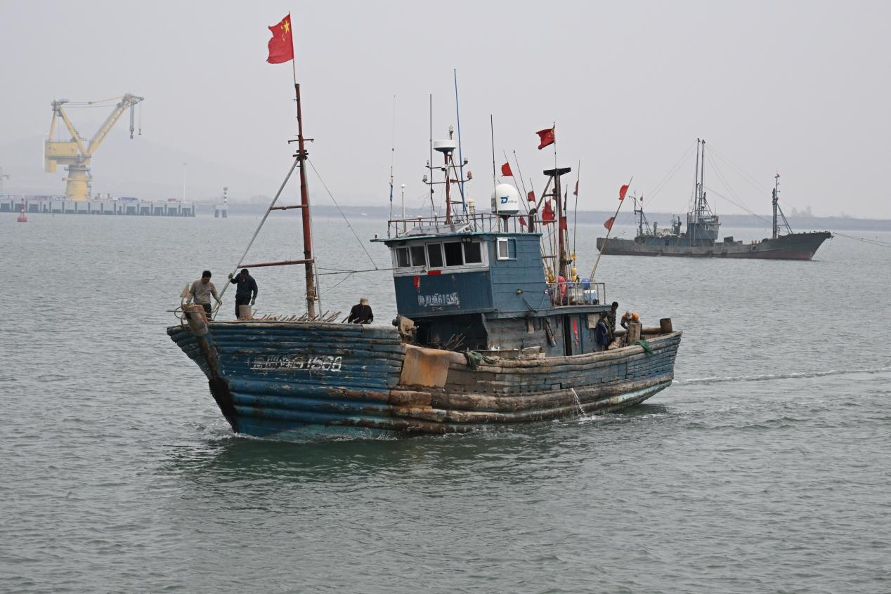 一艘艘捕捞渔船缓缓驶入码头(张涛 摄)