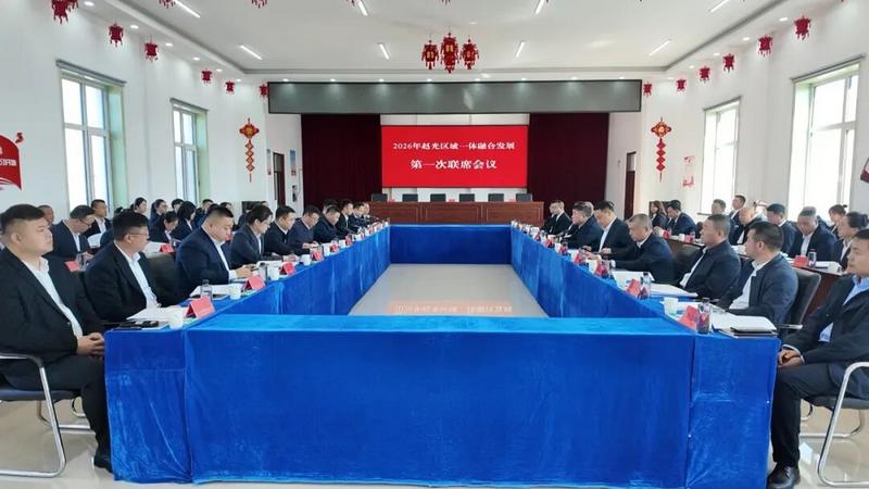 近日,2026年黑龙江省北安市赵光区域一体融合发展第一次联席会议召开。会议旨在深入贯彻落实北安市委、市政府决策部署,深化垦地粮企协同联动,推动区域产业集群做大做强。赵光镇、赵光社区管委会、赵光农场、中央储备粮赵光直属库有限公司、九三食品(北安)有限公司、北大荒黑龙江垦丰赵光种业有限公司主要负责人参加会议,各村党组织书记、驻村第一书记、社区书记及驻镇优秀企业代表、社会化服务主体代表列席会议。