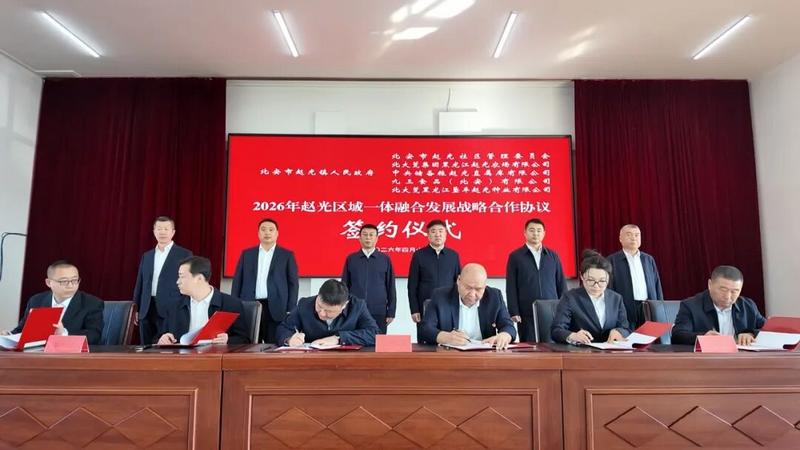 会上就《2026年赵光区域一体融合发展战略合作方案》《赵光镇与赵光农场2026年垦地现代农业发展合作方案》《赵光镇与中储粮赵光直属库区域粮储扩容提质合作框架协议》及《赵光镇与九三食品(北安)有限公司绿色食品产加销联营合作框架协议》作了说明。