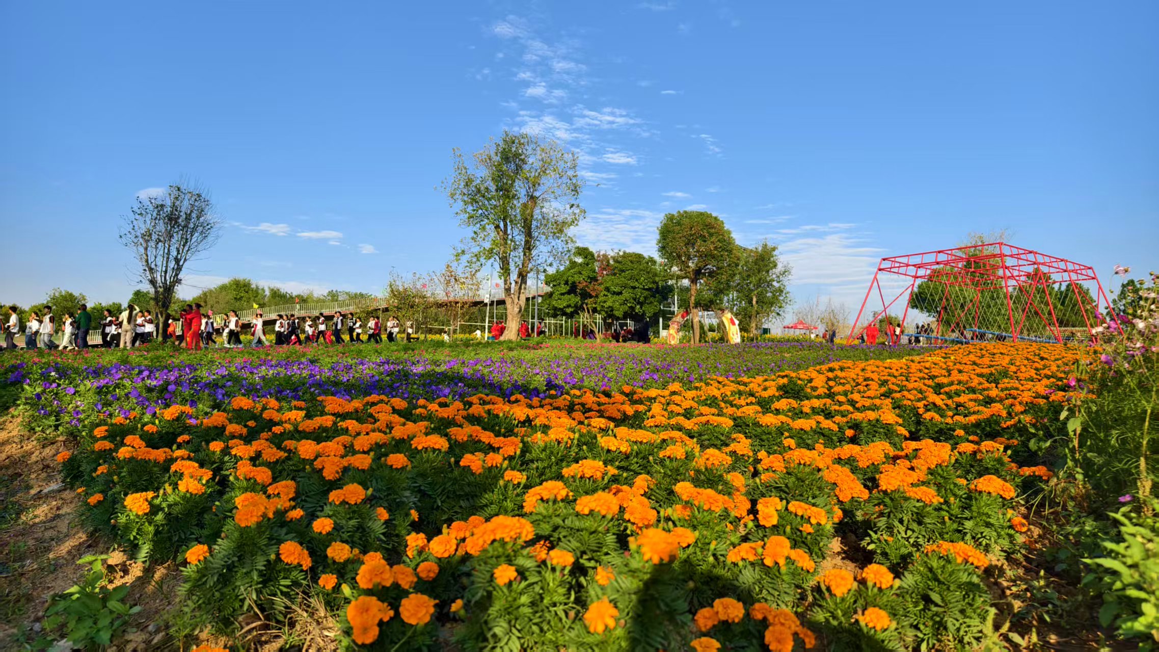楚珍园花海如画,游人如织。(李梦婷 摄)