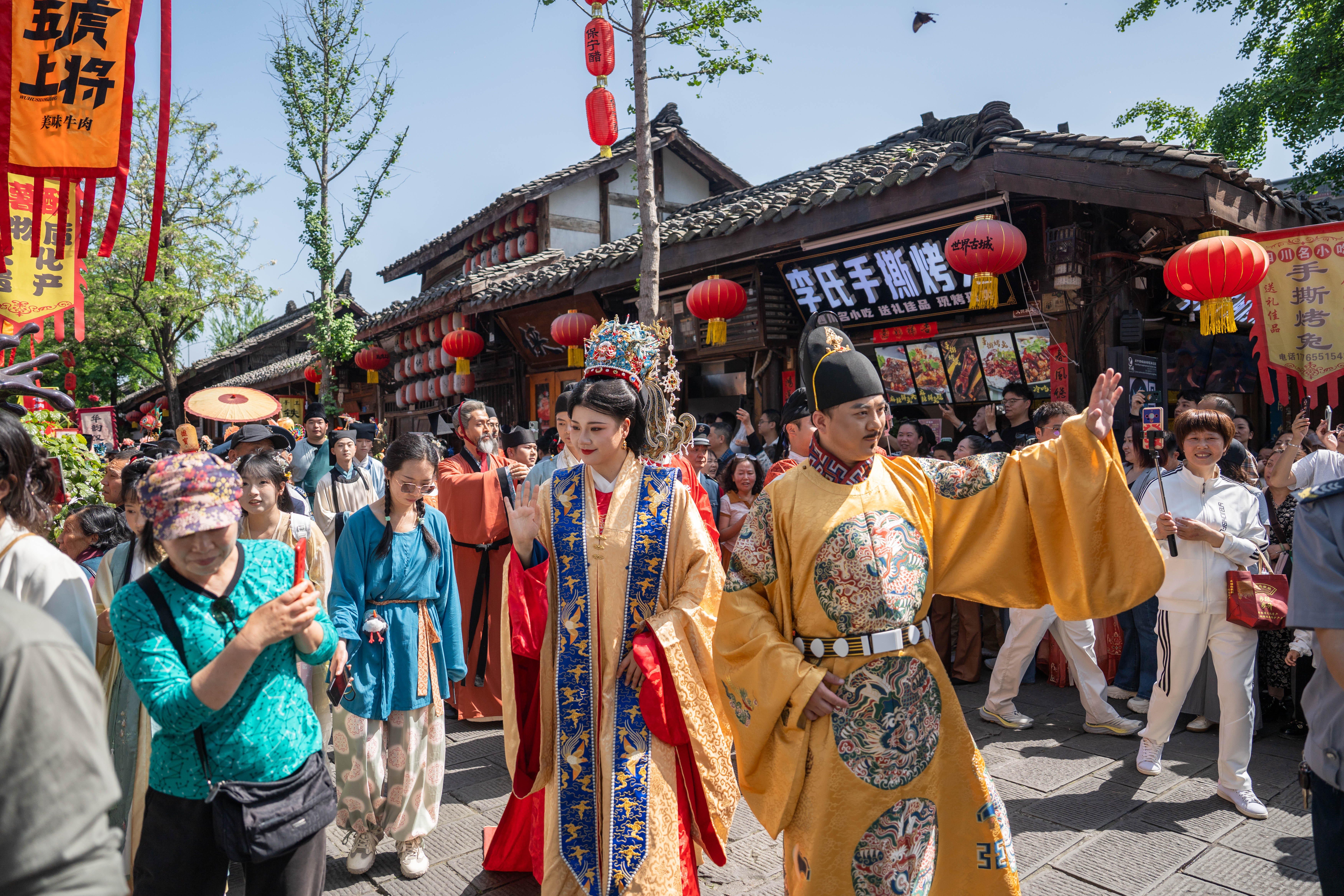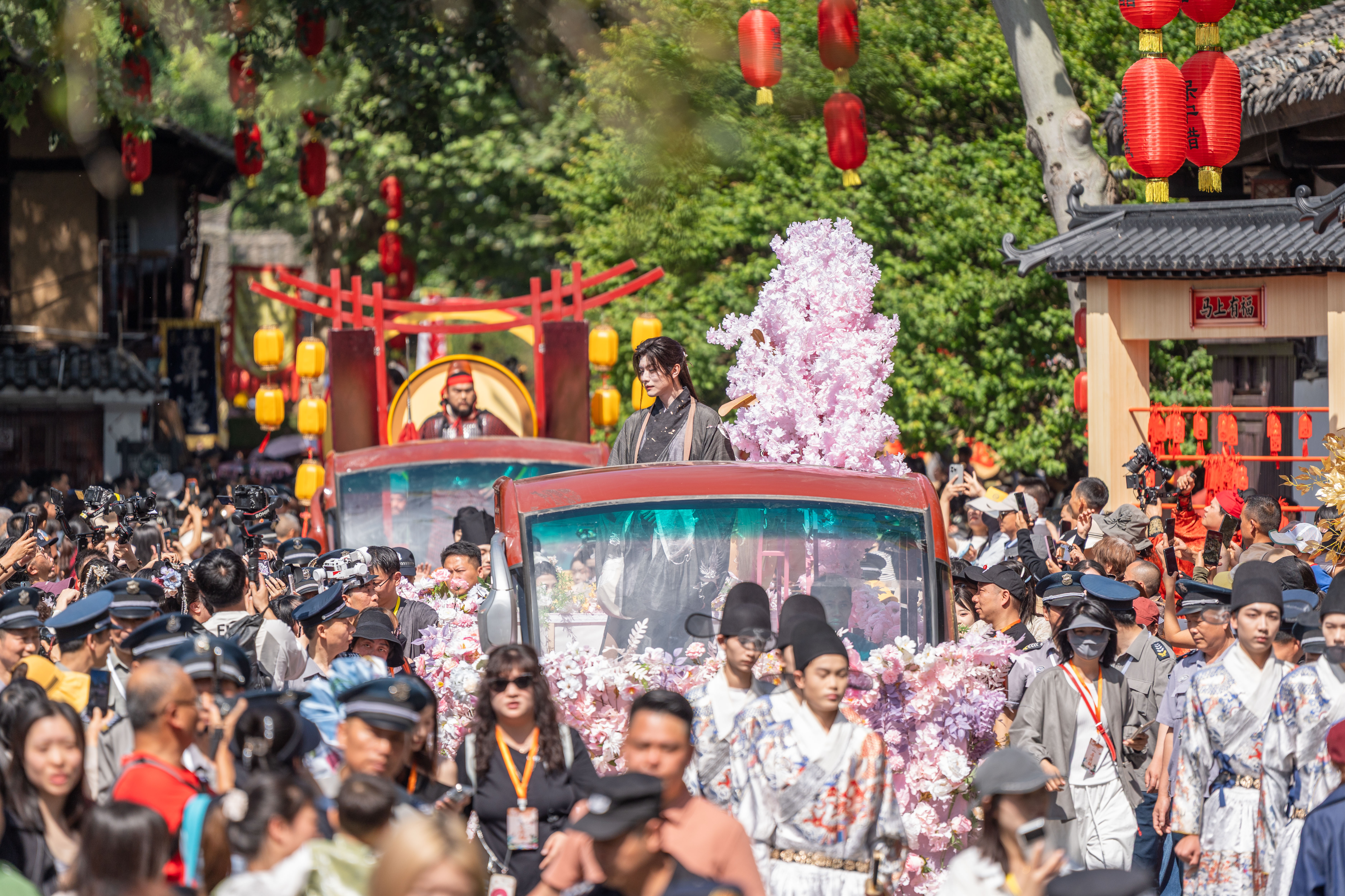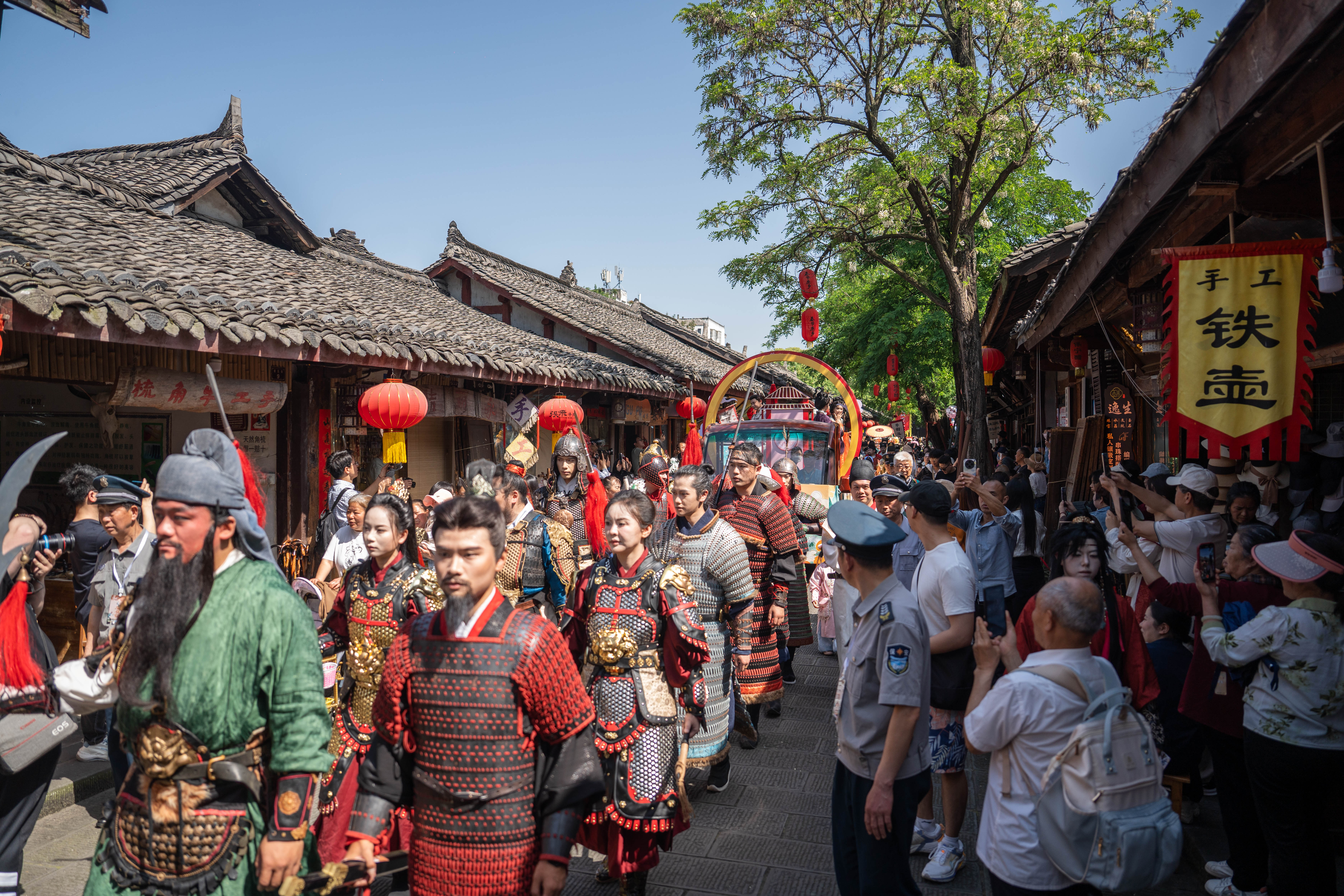 10时整,古城街巷间,主题巡游惊艳启幕。36位汉服NPC、200余位同袍组成方阵整齐列队前行,霓裳华服与青瓦古巷相映成趣。十二花神会、武将仪仗队、国色阆中巡游队三大主题花车鱼贯登场,组成绵延长龙穿行于古城肌理,一步一景绘就流动国风长卷,让千年古城在沉浸式氛围中鲜活出圈、潮味十足。