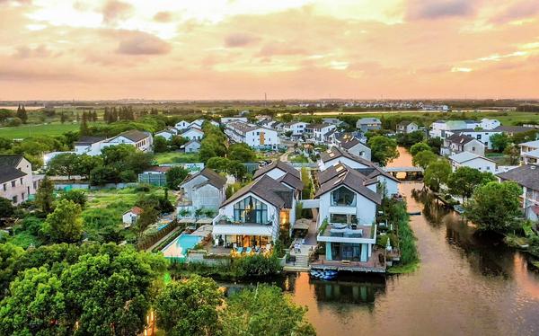 在昆山市淀山湖镇金家庄村,一片白墙黛瓦的建筑隐于田野水道之间,错落有致、古意盎然,这便是备受游客青睐的拾柒·隐书香府邸酒店。