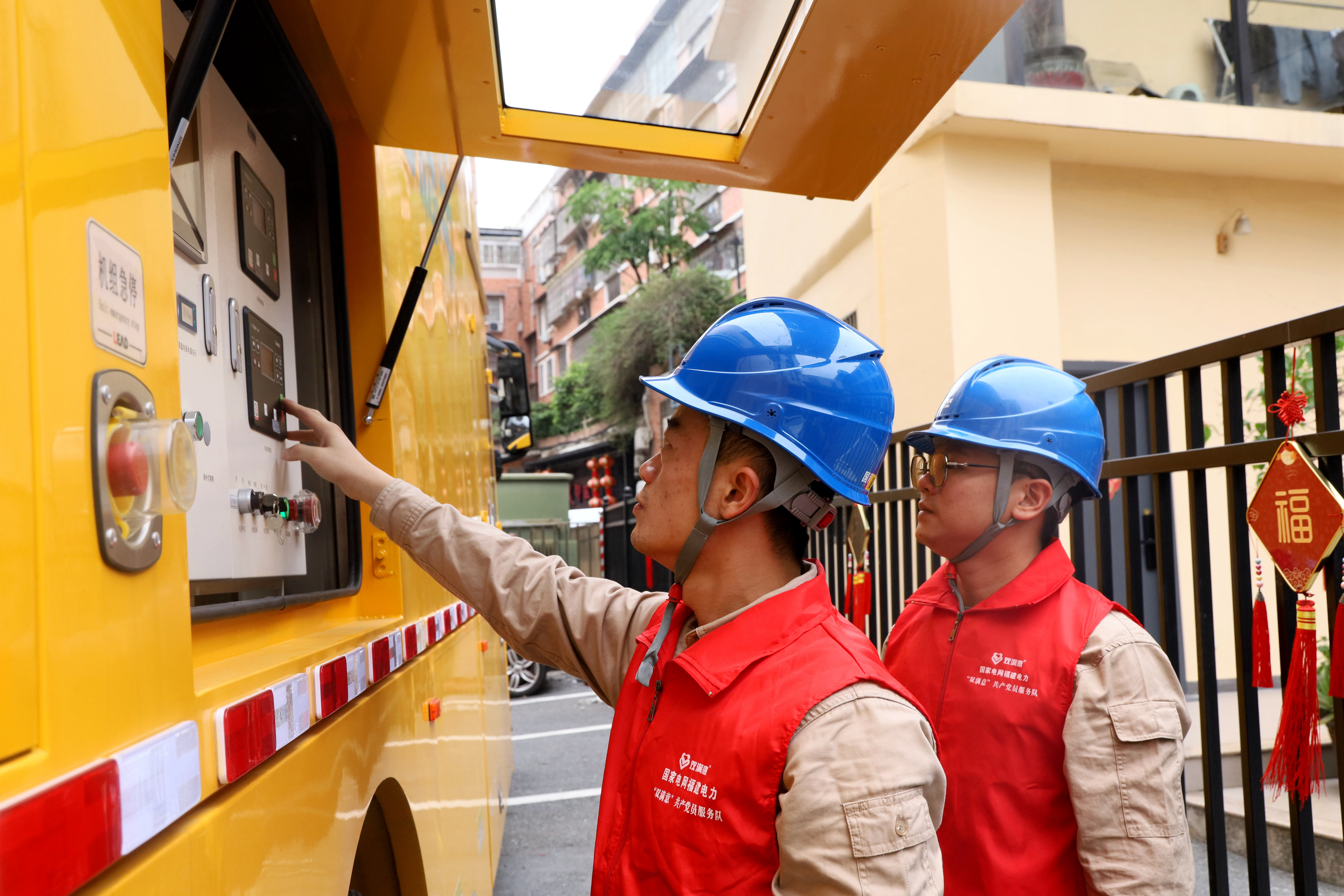 国网福建省电力有限公司漳州供电公司在侨芗剧场对应急发电车进行调试。(黄智聪 摄)