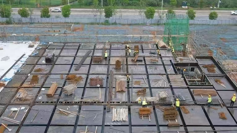 搅拌车伸出长臂浇筑混凝土,塔吊平稳吊运成捆钢筋,工人们在钢管架间穿梭绑扎、砌筑……日前,走进位于安徽池州高新区东区的晟集池州智造产业园一期项目现场,7栋标准化厂房正在加紧建设,其中3号厂房率先实现主体封顶,项目进度条持续“刷新”。