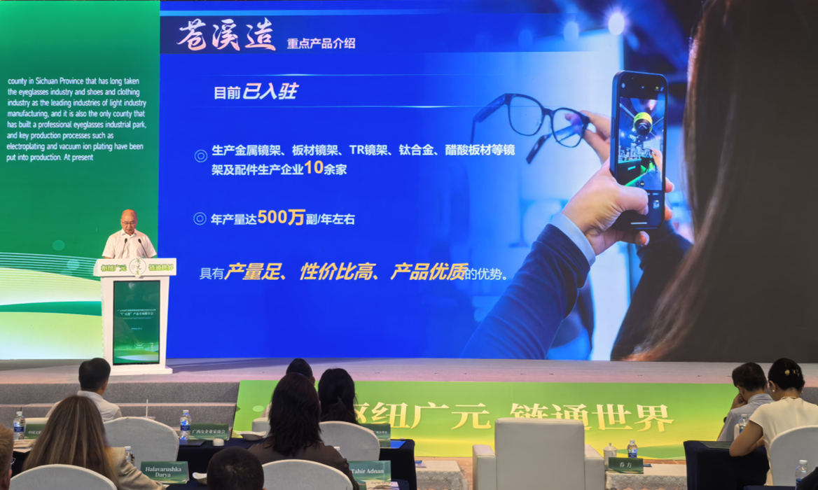 4月23日,四川省广元市再生铝原料检验监管模式优化试点暨“广元造”产品专场推介会在广东省广州市举行。活动期间,苍溪县政协副主席马成就苍溪产业优势和发展机遇作专题宣传推介,重点向17家国外客商详细介绍了以眼镜制造为代表的轻工产业发展情况。