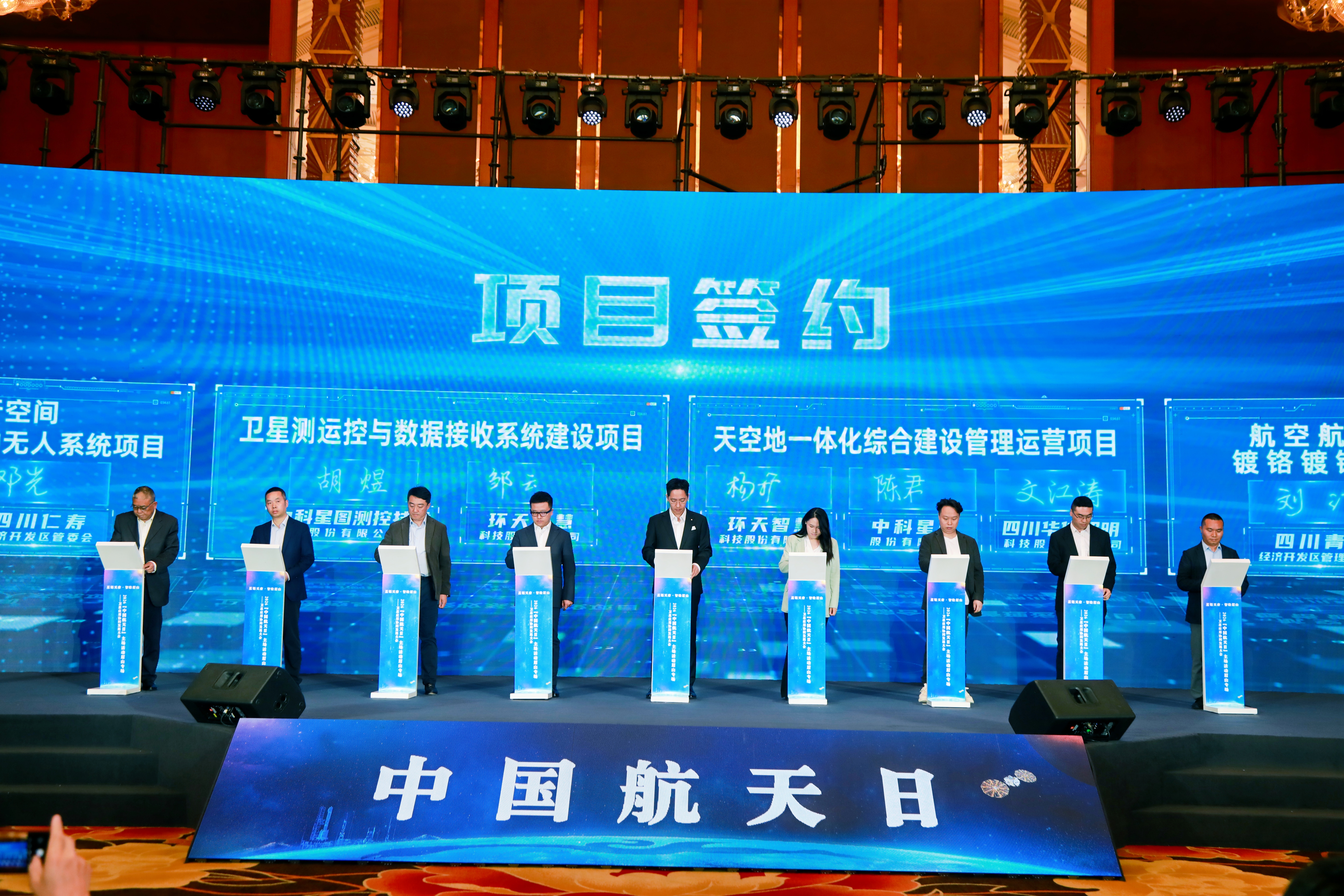 活动上举行航空航天企业项目现场签约仪式,环天智慧科技股份有限公司、中科星图股份有限公司、四川华体照明科技股份有限公司、中科星图测控技术股份有限公司、四川仁寿经济开发区管委会、梵天智控(四川)科技有限公司、四川青神经济开发区管委会、四川立鑫腾达金属表面处理有限责任公司等单位分别签约天空地一体化综合建设管理运营项目、卫星测运控与数据接收系统建设项目、四川成都平行空间(眉山)梵天智控特种无人系统项目、航空航天及大型零部件镀铬镀镉自动化生产项目。这些项目的签约落地,将不断擦亮“追星逐链看眉山”的招牌。