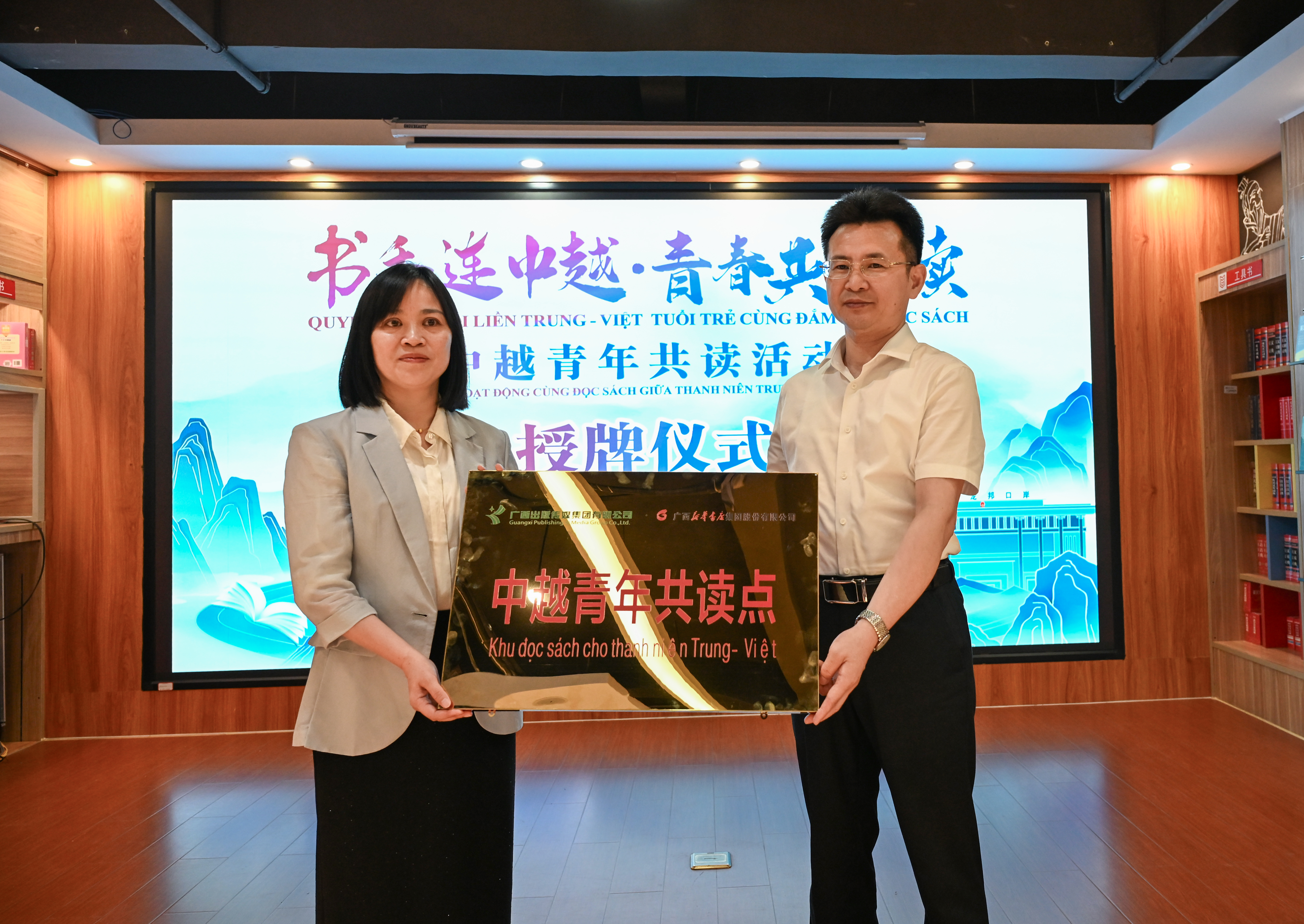 书籍是跨越国界的无声语言,阅读是连接心灵的重要纽带。靖西作为中越边境门户,以书香为桥搭建中越青年交流平台,既能推动两国青年在共读中感悟文化魅力,又能让中越友谊在青春互动中扎根深植。活动现场,“中越共读点”授牌仪式隆重举行,靖西国门书店正式成为中越青年常态化共读交流的文化地标。随后,现场举行赠书活动,一本本承载着两国文化底蕴与青春期许的书籍,成为联结中越友谊的坚实载体,为边境跨境阅读文化建设筑牢基础。