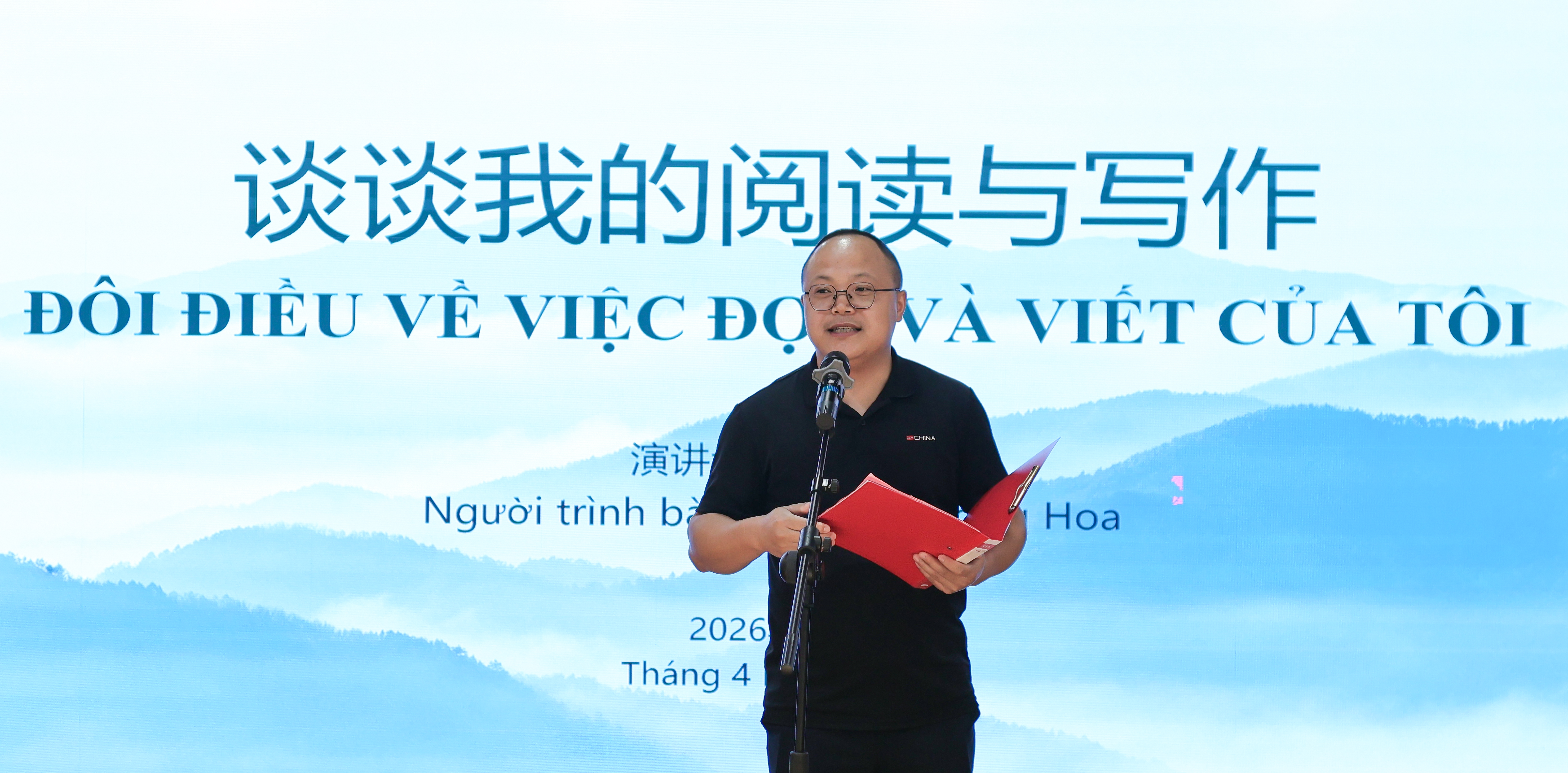 越方特邀嘉宾、广西越雅进出口贸易公司总经理裴氏翠云则聚焦小说创作技巧与日常阅读体悟展开分享。她结合越南本土文学特色与跨境交流实践,带来兼具本土化底蕴与国际性视野的文学思考,既详解小说人物塑造、情节构思等创作干货,也分享阅读对个人成长、格局塑造的重要意义,为现场热爱文学的中越青年拓展思路、启发灵感。