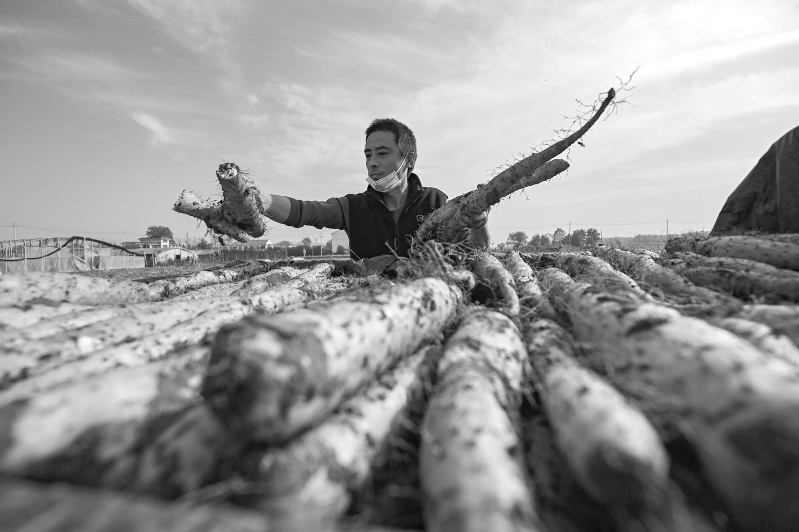 初冬时节,山东省青州市农民种植的萝卜、山药等根茎类蔬菜喜获丰收,菜农们紧抓晴好天气,忙着收获、装车,田间一派繁忙景象。