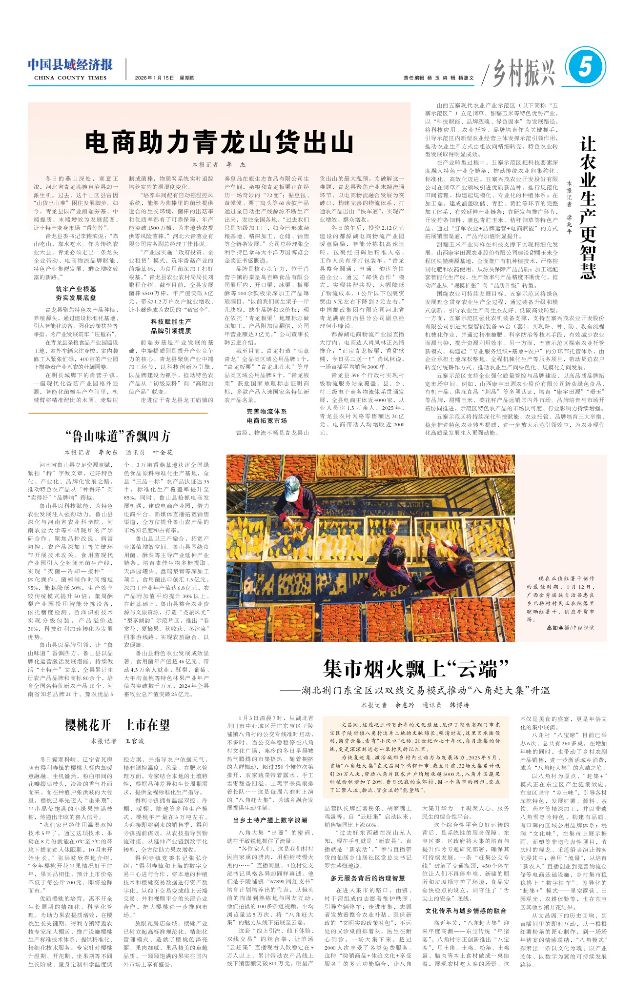 1月3日清晨7时,从湖北省荆门市中心城区开往东宝区子陵铺镇八角村的公交专线准时启动,不多时,当公交车稳稳停在八角村文化广场,寒冷的冬日早晨被热气腾腾的市集捂热。随着拥挤的人群挪动,超过350个摊位次第排开,农家蔬菜带着露水,手工雪枣甜香四溢,土鸡宰杀摊前排着长队……这是每周六准时上演的“八角赶大集”,为城乡融合发展提供生动注解。