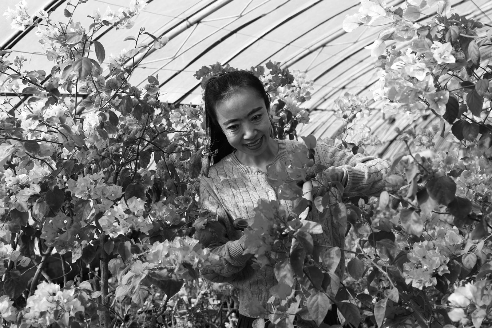 11月9日,甘肃省嘉峪关市文殊镇恒翔现代农业示范园区日光温室里的各种鲜花竞相绽放,花农忙着修剪、培育鲜花。