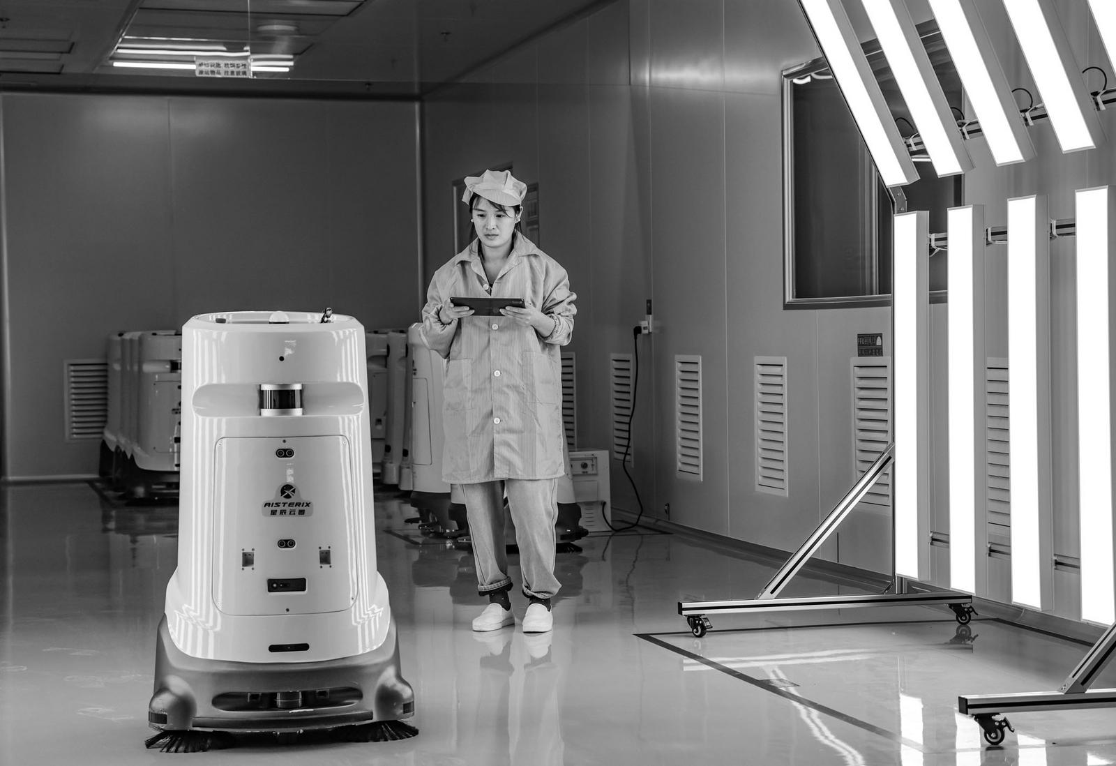 12月25日,在位于山西省运城市临猗县的山西星辰云图智能科技有限公司生产车间内,工人在检测智能机器人产品性能。