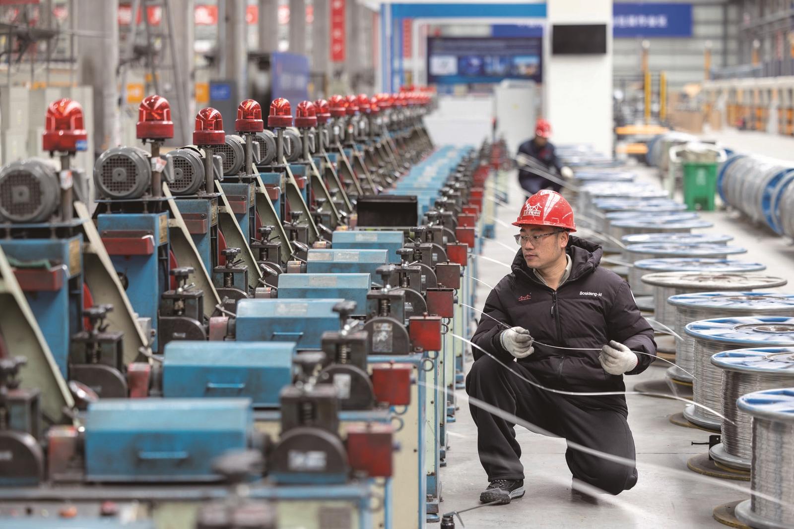 2月24日,工人在位于江苏省泰州市海陵区的江苏金桥焊材科技有限公司生产线上忙碌,加紧赶制订单。