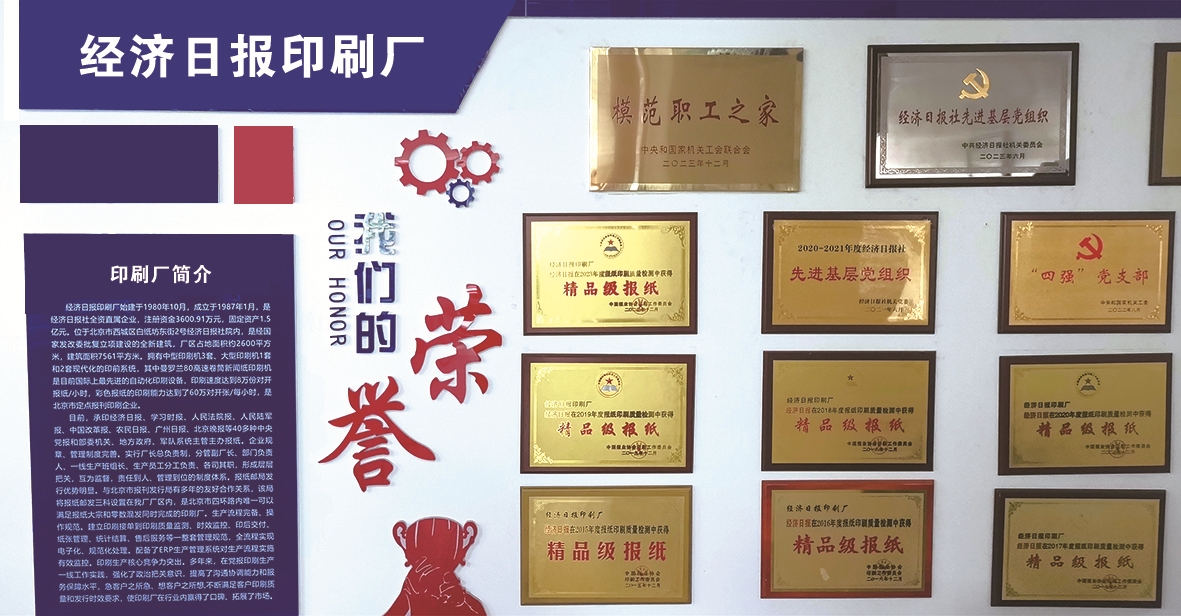 近年来,在经济日报编委会坚强领导、职能部门业务指导和印刷厂全体干部职工的共同努力下,经济日报印刷厂以“减量化改革、高质量发展”为主题,坚持狠抓经常性基础性工作不放松,注重调动广大干部职工工作积极性,高质量完成阶段性重点工作任务,推动印刷厂事业发展达到新高度,取得了单位建设和生产经营双丰收的喜人成绩。2022年获得了中央和国家机关“四强”党支部荣誉称号,2023年获得了中央和国家机关工会联合会“模范职工之家”荣誉称号,连续三年获得了“经济日报先进基层党组织”“经济日报先进集体”等荣誉。经济日报印刷厂印刷生产量连续多年保持在5亿对开印张以上,在全国151家印刷企业中排名第11位。