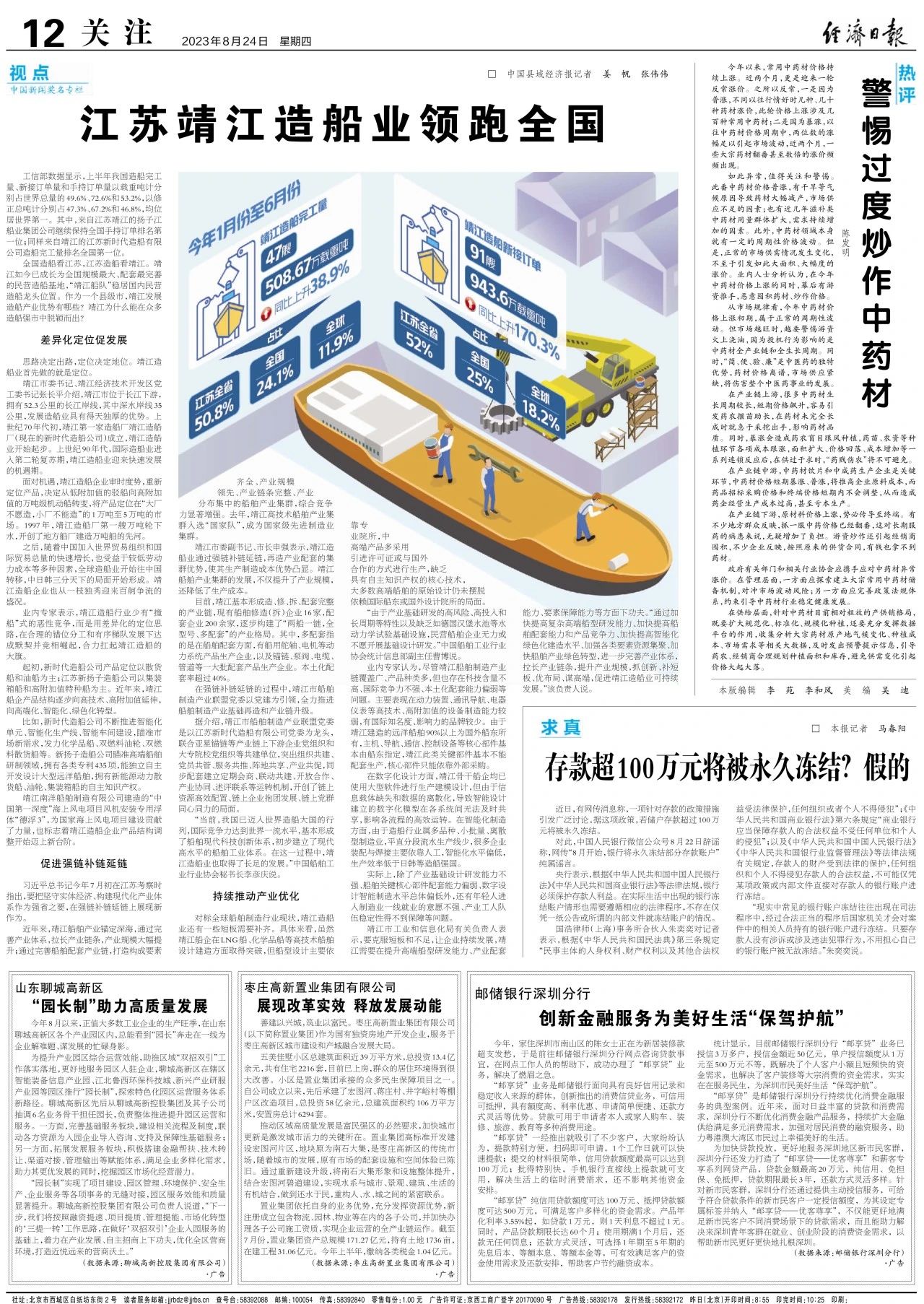 近年来,靖江船舶产业锚定深海,通过完善产业体系,拉长产业链条,产业规模大幅提升;通过完善船舶配套产业链,打造构成要素齐全、产业规模领先、产业链条完整、产业分布集中的船舶产业集群,综合竞争力显著增强。去年,靖江高技术船舶产业集群入选“国家队”,成为国家级先进制造业集群。