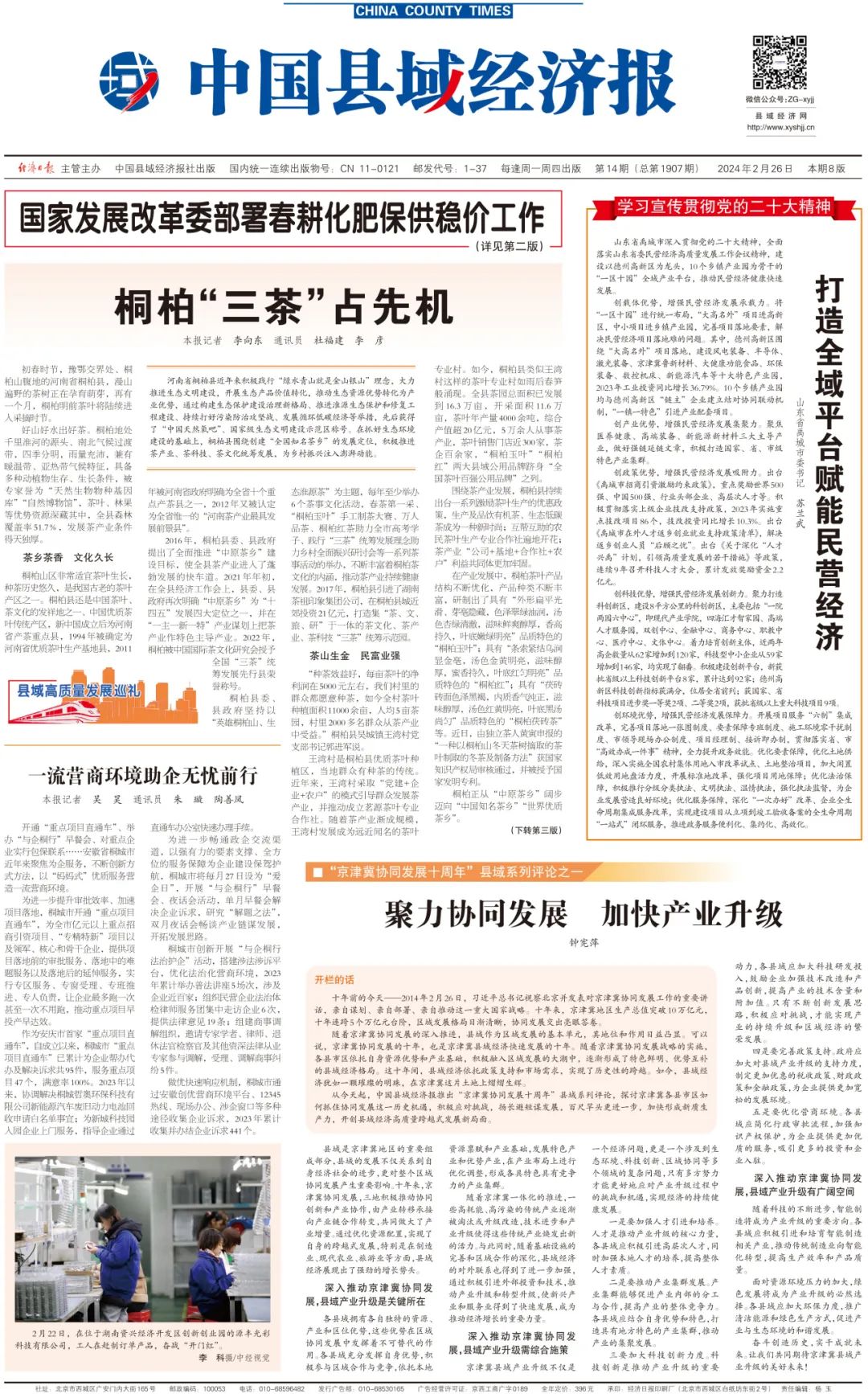 从今天起,中国县域经济报推出“京津冀协同发展十周年”县域系列评论,探讨京津冀各县市区如何抓住协同发展这一历史机遇,积极应对挑战,扬长避短谋发展,百尺竿头更进一步,加快形成新质生产力,开创县域经济高质量跨越式发展新局面。