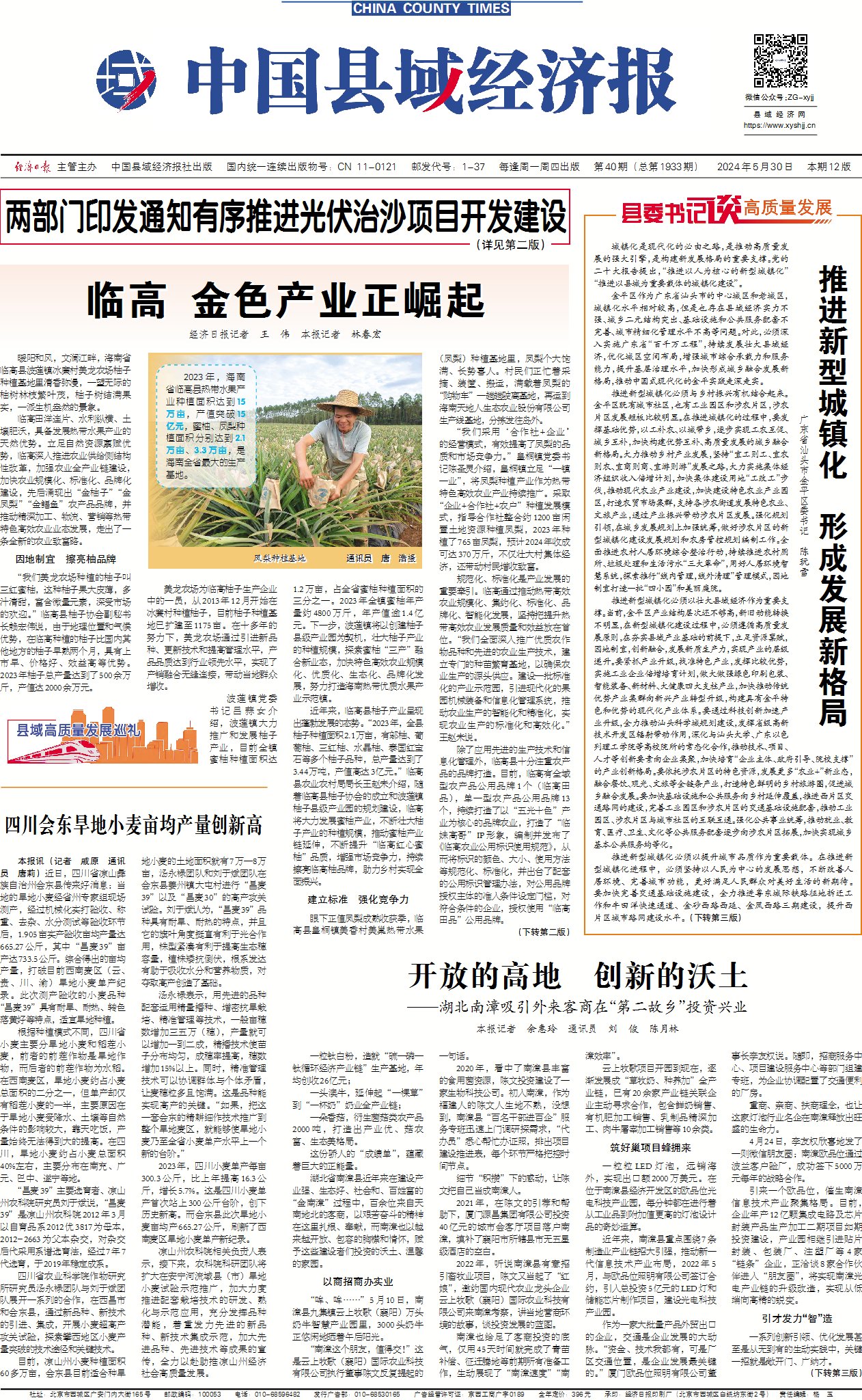 规范化、标准化是产业发展的重要牵引。临高通过推动热带高效农业规模化、集约化、标准化、品牌化、智能化发展,坚持把提升热带高效农业发展质量和效益放在首位。“我们全面深入推广优质农作物品种和先进的农业生产技术,建立专门的种苗繁育基地,以确保农业生产的源头供应。建设一批标准化的产业示范园,引进现代化的果园机械装备和信息化管理系统,推动农业生产的智能化和精准化,实现农业生产的标准化和高效化。”王赵未说。