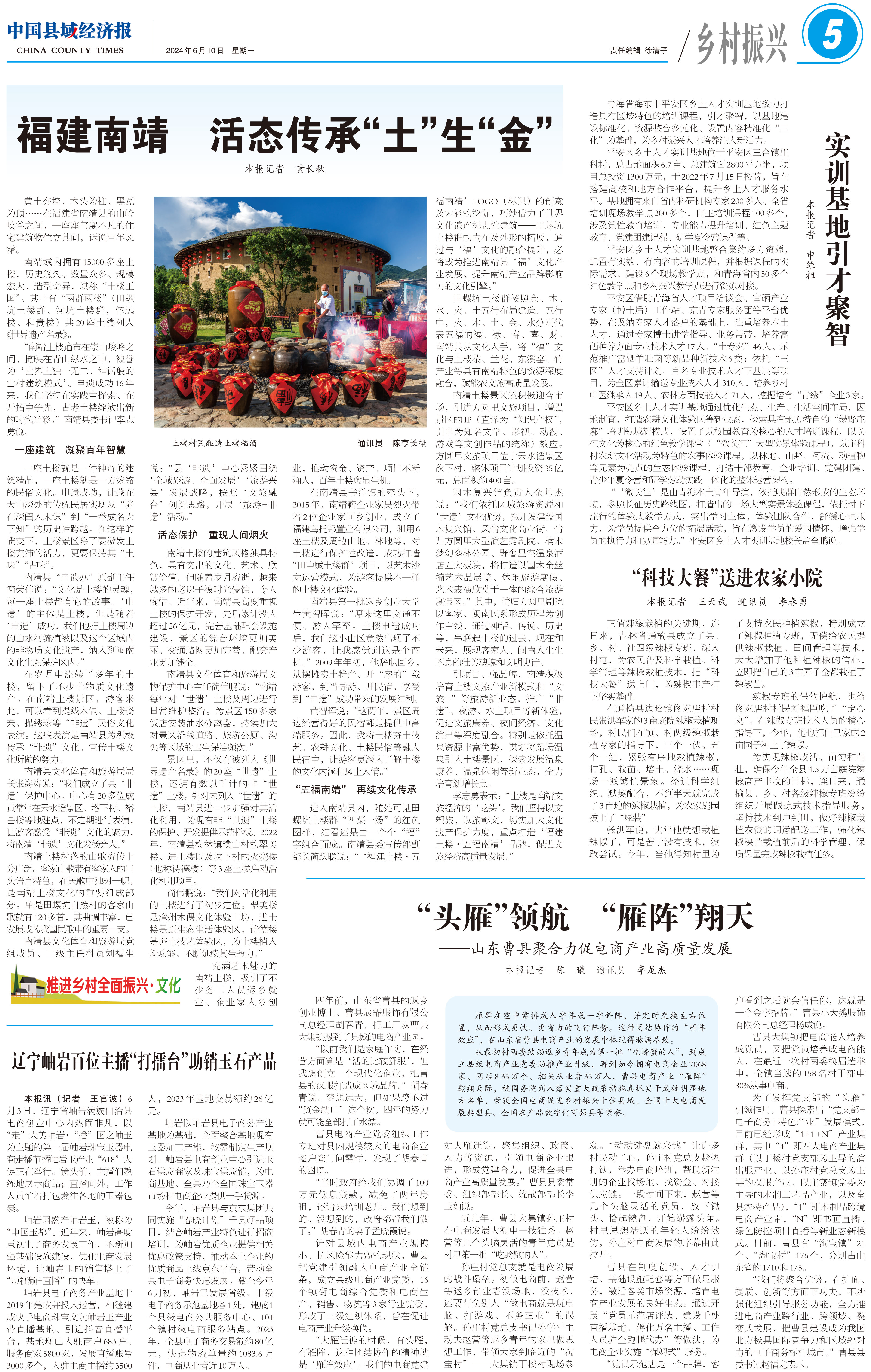 李志勇表示:“土楼是南靖文旅经济的‘龙头’。我们坚持以文塑旅、以旅彰文,切实加大文化遗产保护力度,重点打造‘福建土楼·五福南靖’品牌,促进文旅经济高质量发展。”(本报记者 黄长秋)