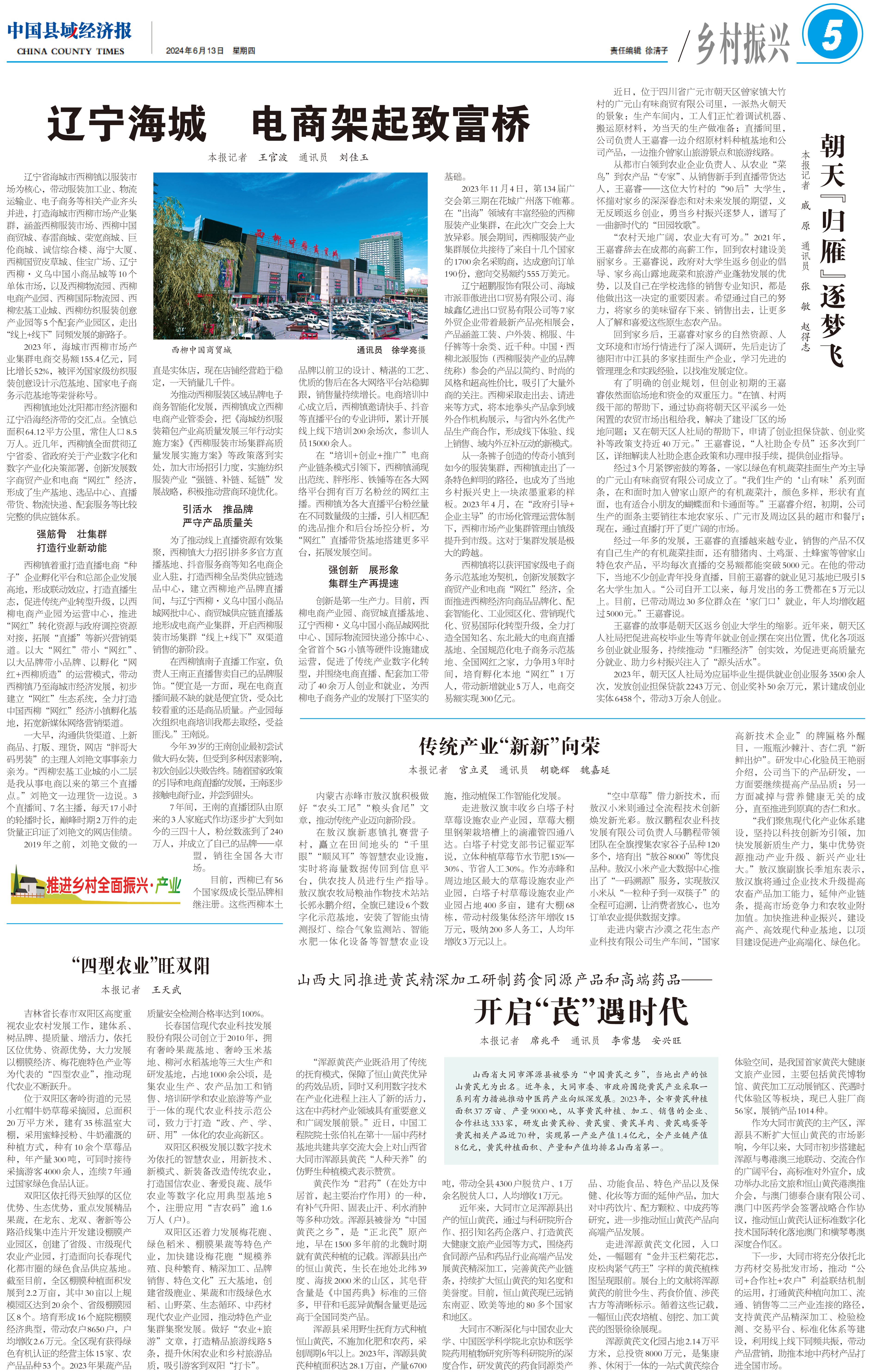 2023年,海城市西柳市场产业集群电商交易额155.4亿元,同比增长52%,被评为国家级纺织服装创意设计示范基地、国家电子商务示范基地等荣誉称号。