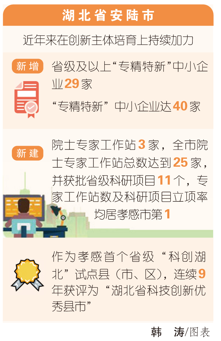 安陆市近年来以创建省级创新型县市和建设孝感国家农业科技园区安陆核心区为总抓手,深入实施创新驱动发展战略,大力培育创新主体,积极推进高新技术产业发展,为带动全域经济社会全面发展提供了强有力的科技支撑。