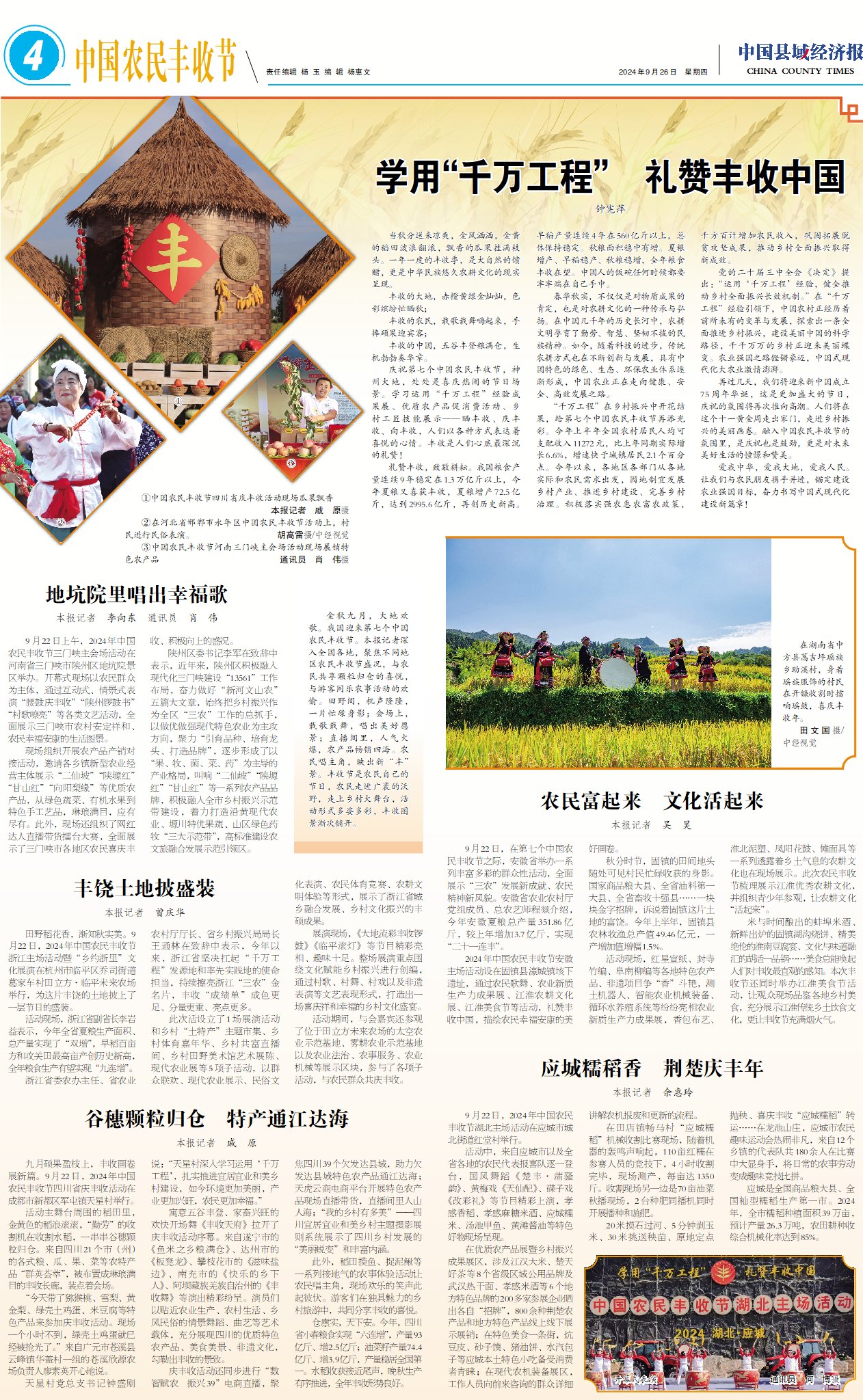 庆祝第七个中国农民丰收节,神州大地,处处是喜庆热闹的节日场景。学习运用“千万工程”经验成果展、优质农产品促消费活动、乡村工匠技能展示——晒丰收、庆丰收、向丰收,人们以各种方式表达着喜悦的心情。丰收是人们心底最深沉的礼赞!