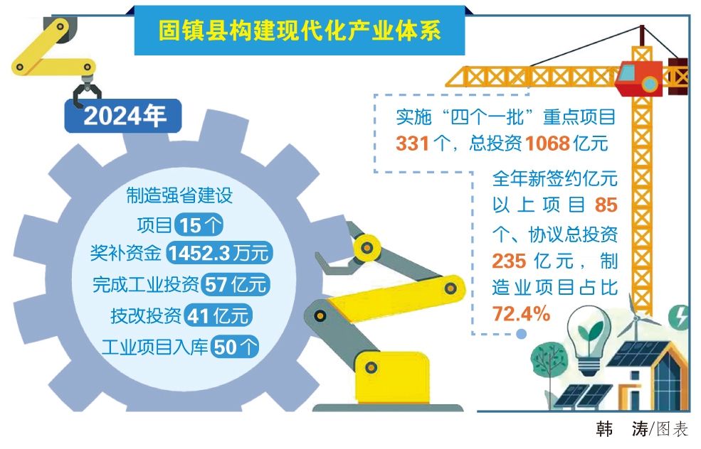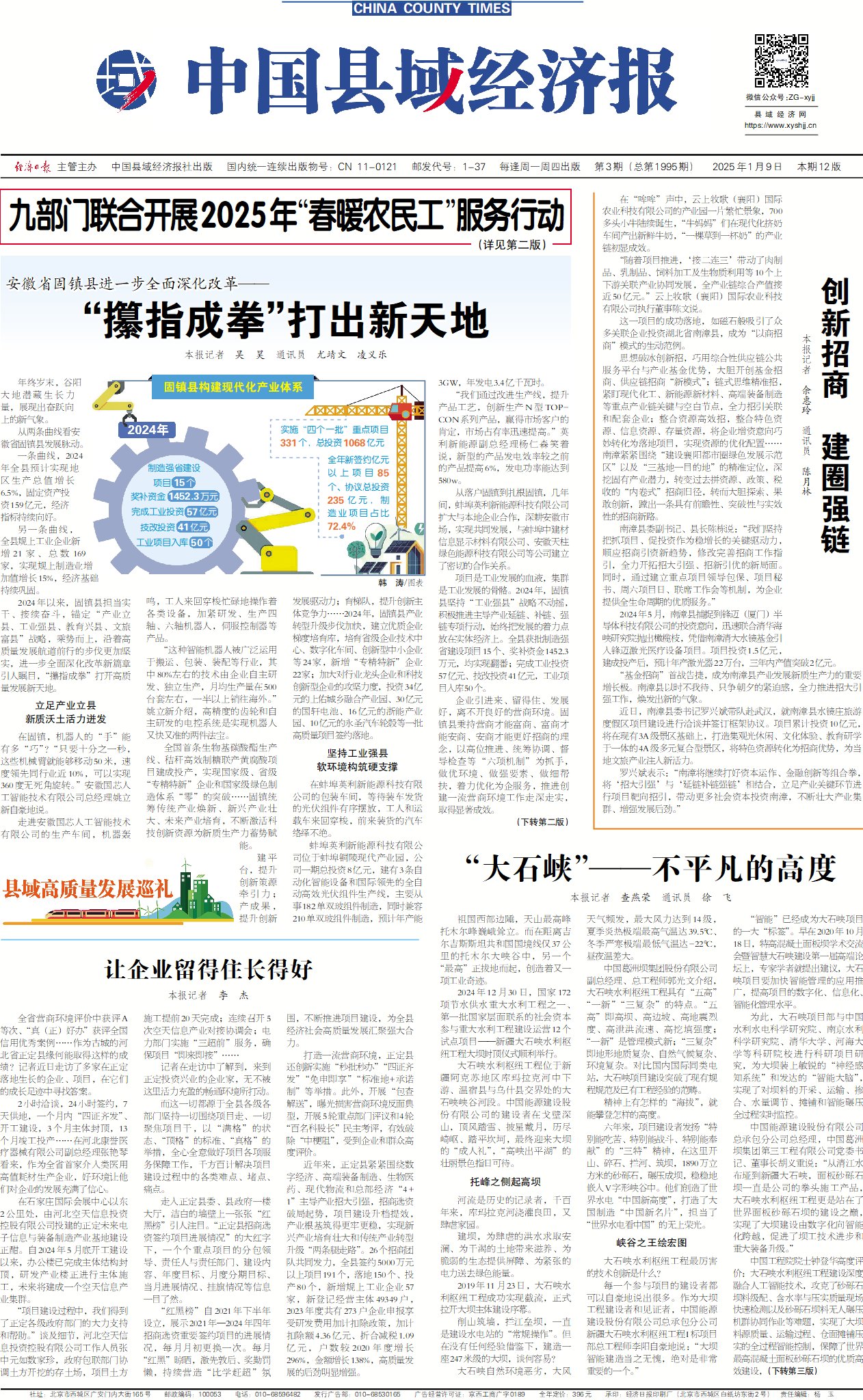 建平台,提升创新策源牵引力;产成果,提升创新发展驱动力;育梯队,提升创新主体竞争力……2024年,固镇县产业转型升级步伐加快,建立优质企业梯度培育库,培育省级企业技术中心、数字化车间、创新型中小企业等24家,新增“专精特新”企业22家;加大对行业龙头企业和科技创新型企业的攻坚力度,投资34亿元的上佑城乡融合产业园、30亿元的国轩电池、16亿元的浙能产业园、10亿元的永圣汽车轮毂等一批高质量项目签约落地。