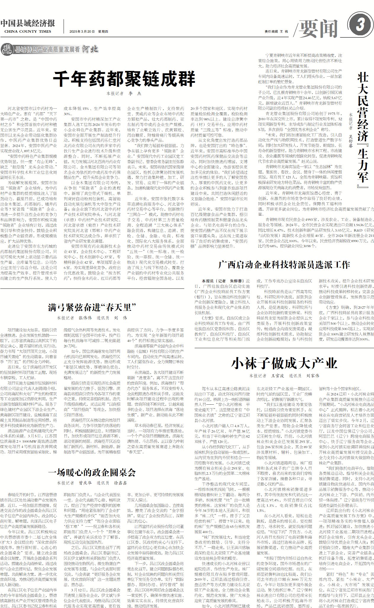 安国市中药材精深加工产业集群入选工信部2024年发布的中小企业特色产业集群。近年来,安国市全面开展生产制造提升行动,积极支持包括国药乐仁堂河北药业有限公司在内的多家中药饮片生产企业进行技术升级和资源整合。同时,不断拓展产业链,大力发展以河北百消丹药业有限公司、金木集团有限公司等知名企业为依托的中成药及中药保健品生产,提升头部企业竞争力。