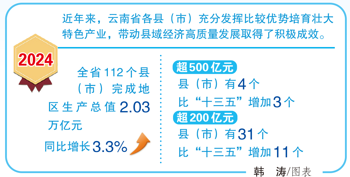 发展特色产业是县域经济高质量发展的主要措施。云南省通过聚焦口岸经济、茶产业、文旅融合、绿色铝业等优势领域,加速构建“一县一特色”的产业发展格局,为全省经济高质量发展注入县域动能。