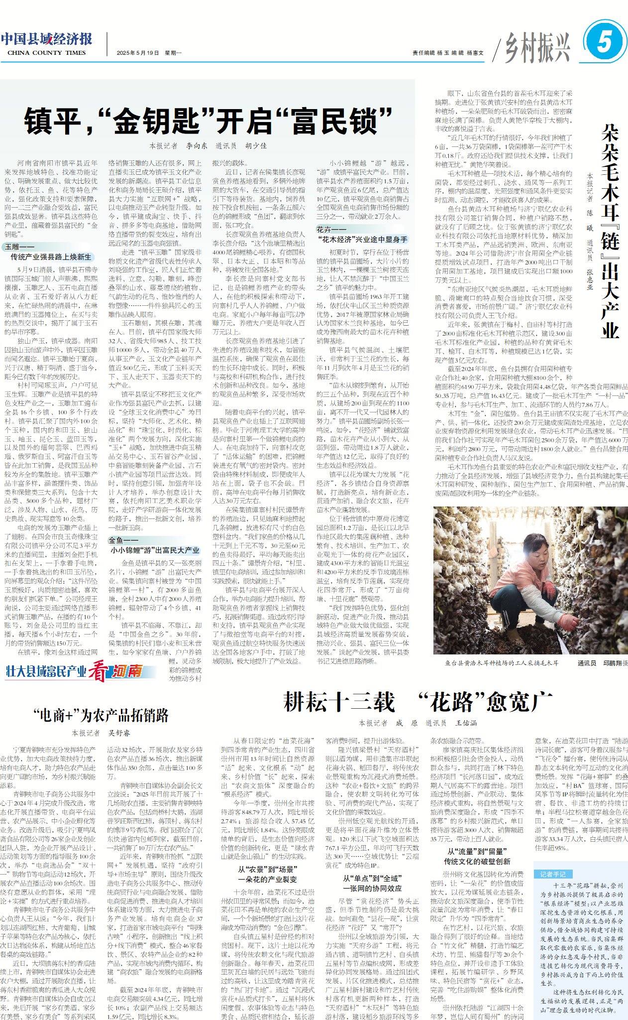 河南省南阳市镇平县近年来发挥地域特色、找准功能定位、明确发展重点、做大比较优势,依托玉、鱼、花等特色产业,强化政策支持和要素保障,向一二三产业融合要效益,富民强县成效显著。镇平县这些特色产业里,蕴藏着强县富民的“金钥匙”。