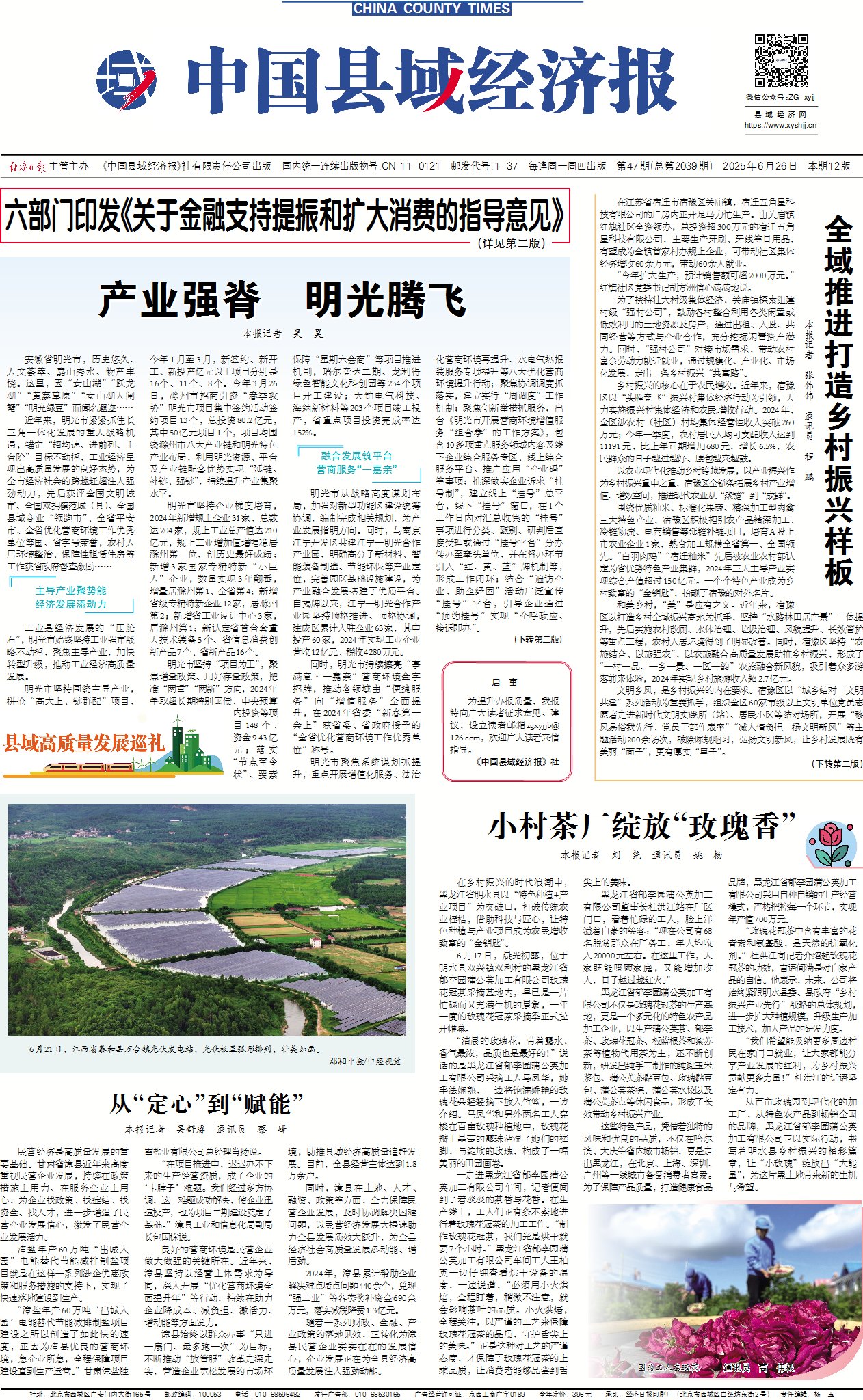 明光市农民生活更加红火,巩固拓展脱贫攻坚成果同乡村振兴有效衔接考核名次实现“三连跃”,位列全省第13名;探索“跨镇联村”产业发展模式,鼓励通过村企联建、共享农庄等方式,发展壮大集体经济,135个村集体经济经营性收入总计超8700万元,农村居民人均可支配收入增速居滁州前列;三界镇梅郢村、苏巷镇戴巷村省级和美乡村精品示范村建设加快推进,6个省级和美乡村中心村通过滁州验收;启动环抹山片区和美乡村组团规划建设,农村面貌焕然一新。
