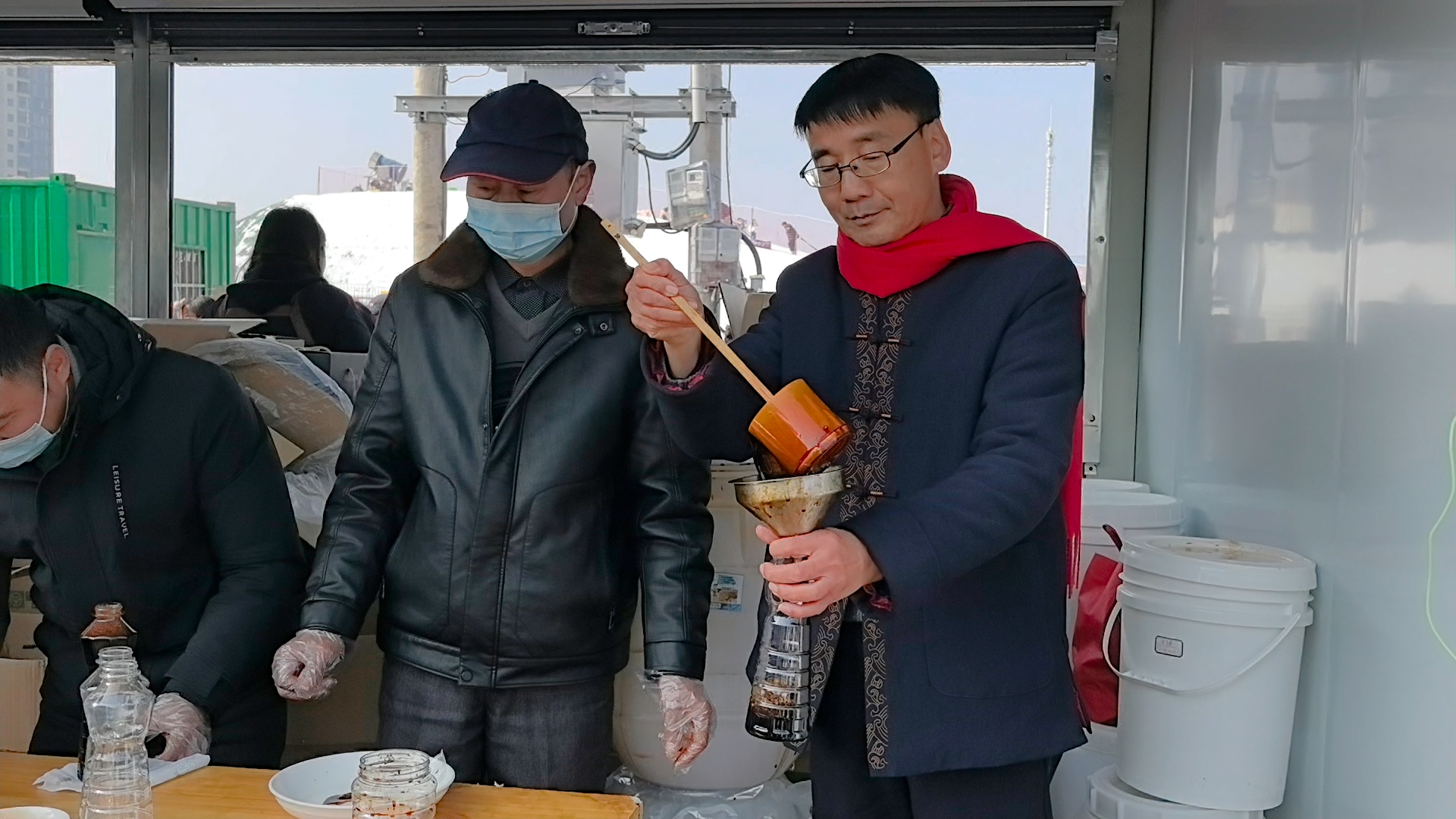 应城市恒茂食品有限公司总经理、黄滩酱油非遗代表性传承人李佳剑正在为顾客打酱油(余惠玲 摄)