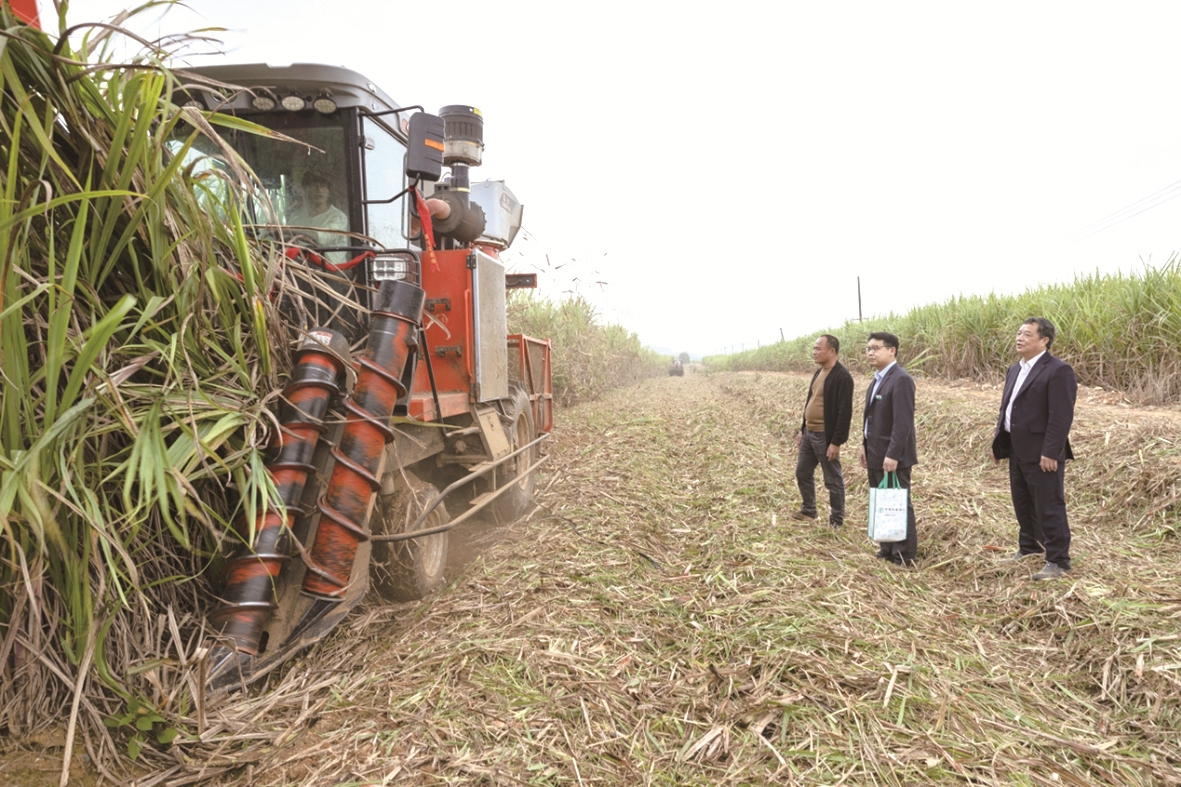 农行客户经理在甘蔗基地了解甘蔗收割情况 (黄学森 摄)