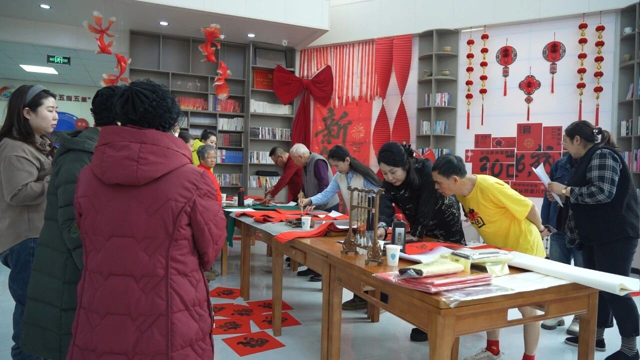 活动现场暖意融融,书画家们铺纸研墨,挥毫泼墨,一副副喜庆吉祥、墨香四溢的春联跃然纸上。一句句美好的祝福,在书法家们的笔下化作寓意吉祥的春联,传递着对居民的新春祝福。居民们满怀期待地围在书画家身旁,有的认真欣赏书法创作过程,有的精心挑选心仪的春联内容,现场欢声笑语不断。