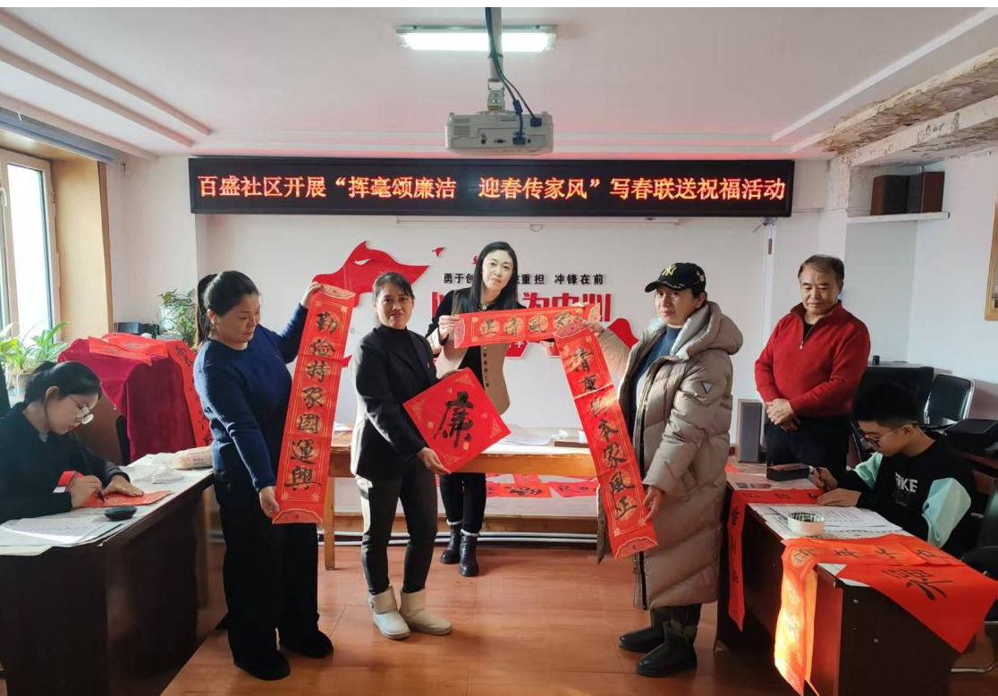 北安市兆麟街道百盛社区开展“挥毫颂廉洁 迎春传家风”写春联送祝福活动,让居民在年味中感受廉洁文化熏陶。