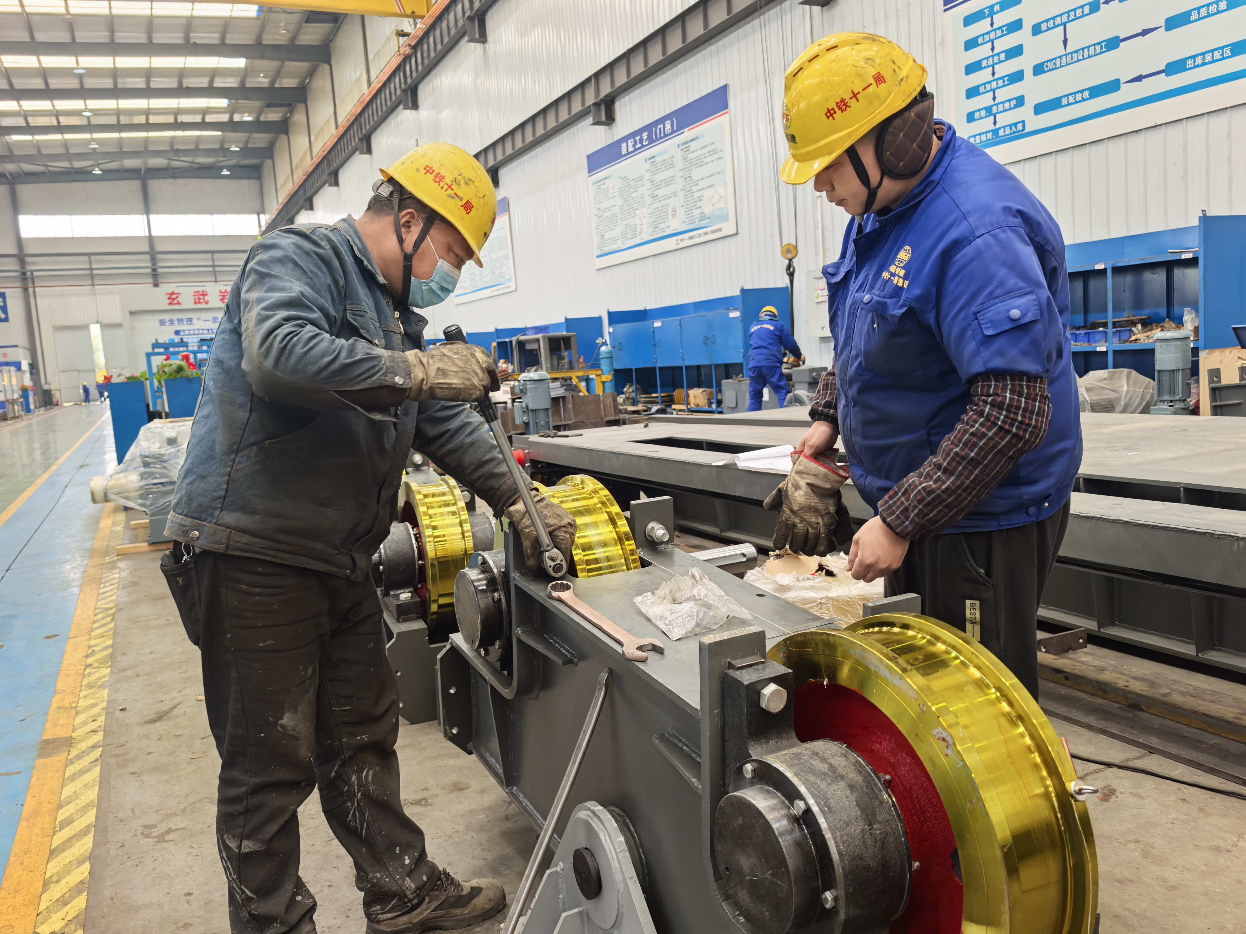 2月6日,寒意未消,位于湖北省襄阳市樊城区的中铁十一局集团汉江重工有限公司(简称“汉江重工”)生产车间内却是一派火热景象。焊花飞溅、机器轰鸣,工人们坚守岗位、加紧作业,全力赶制合湛铁路900吨单主梁架桥机、兰张铁路1000吨轮胎式提梁机,以及墩梁一体机、智能悬臂式造桥机、武穴港集装箱门吊等重点装备,以实干开启新春生产热潮。