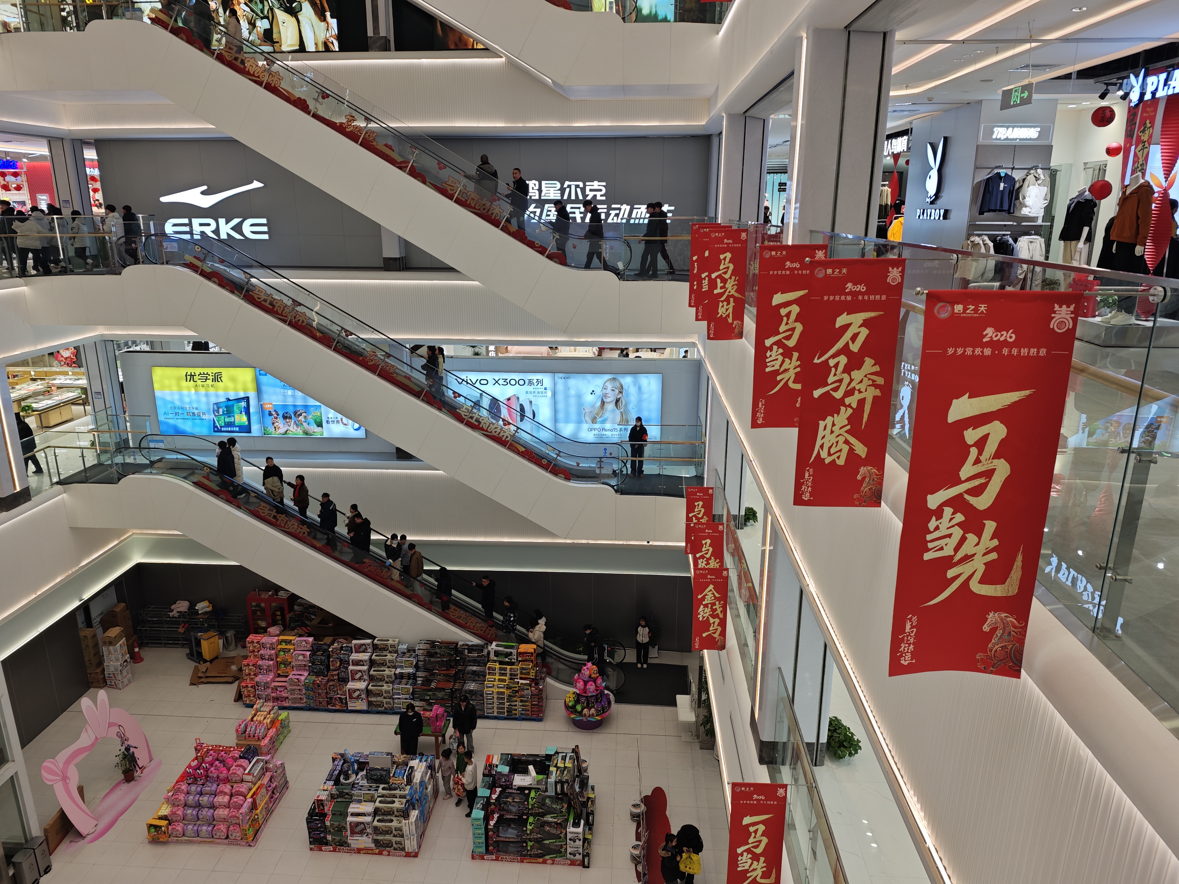 拾级而上,二楼的黄金珠宝、护肤彩妆、针织家纺琳琅满目;三楼、四楼的运动品牌和儿童娱乐区,成为年轻人打卡、亲子家庭休闲的好去处;五楼则是影城和特色餐饮,满足全天候消费需求。“以前逛商场、吃饭、看电影都得跑好几个地方,现在一个商场全搞定。”顾客王曼说,这样的“一站式”体验,让她愿意在这里待上一整天。