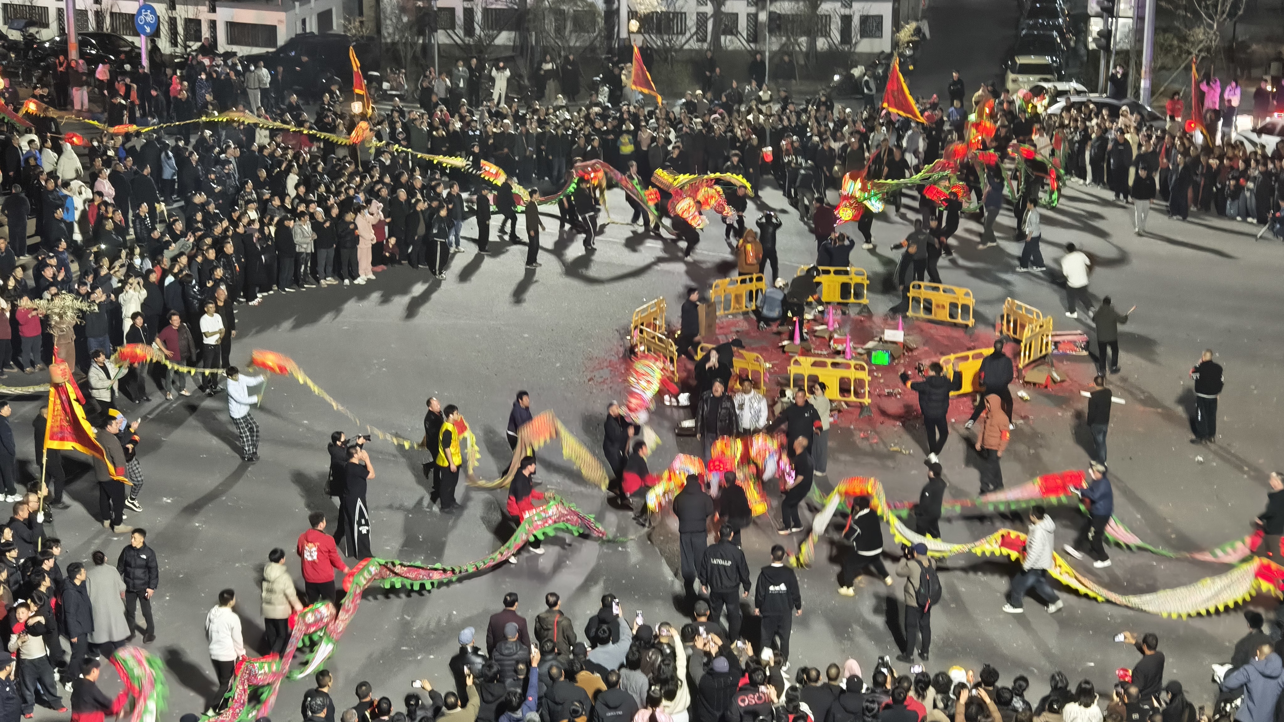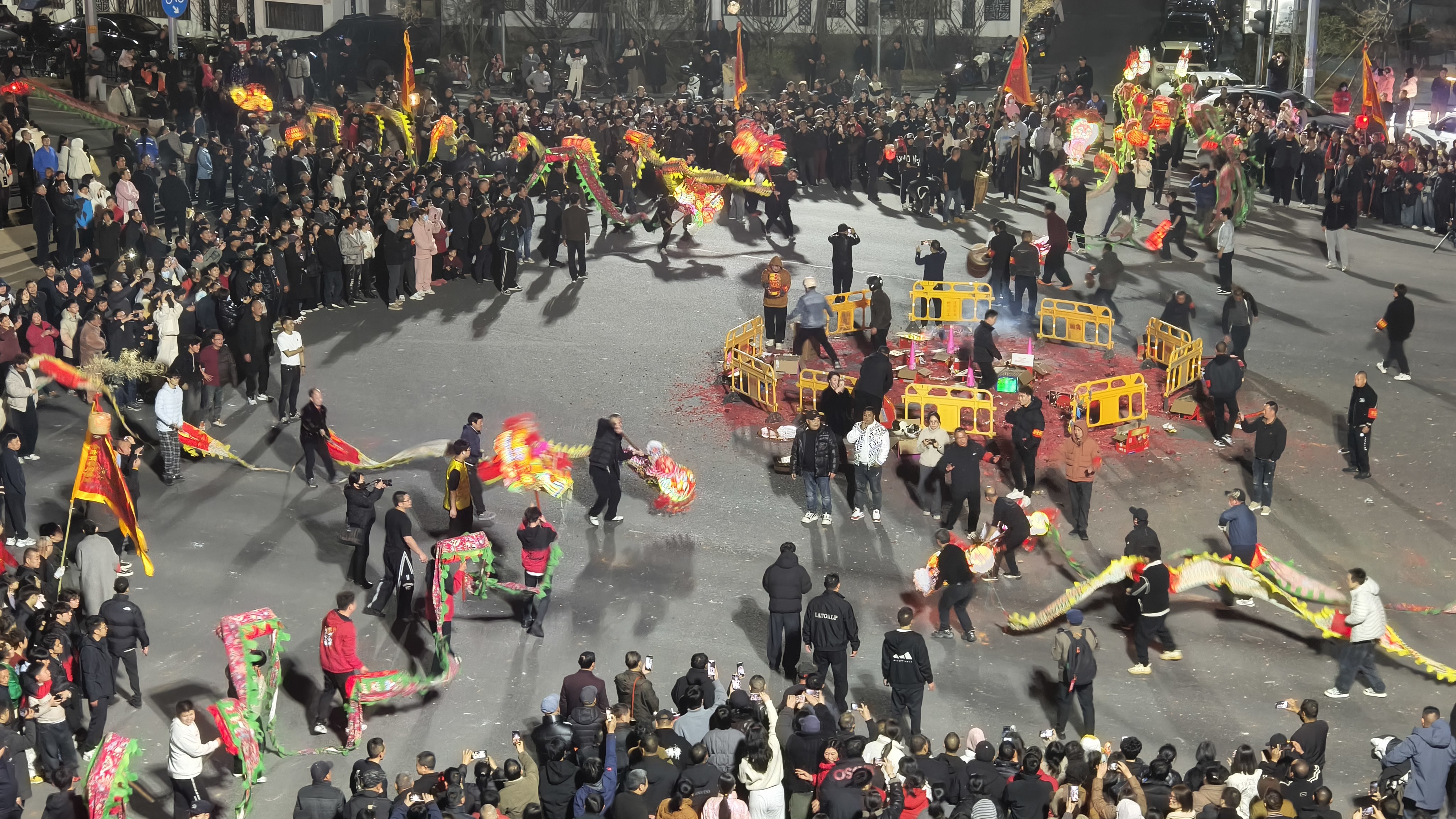 2月25日晚,在浙江省玉环市玉城街道城中村东青片区,随着锣鼓鞭炮齐鸣,玉环市的东岙里、后蛟、双庙、垟青、陡门头、陈屿陈南、内马道、东青等八支花龙舞龙队队员举着长龙(当地称呼“花龙”)左抡右挥,长龙在半空中不断翻转、跳跃、冲奔、扭动,直冲云霄……群龙聚东青迎元宵活动舞龙现场吸引群众争相观看,呈现一片欢乐祥和的喜庆氛围。(记者 曾庆华)
