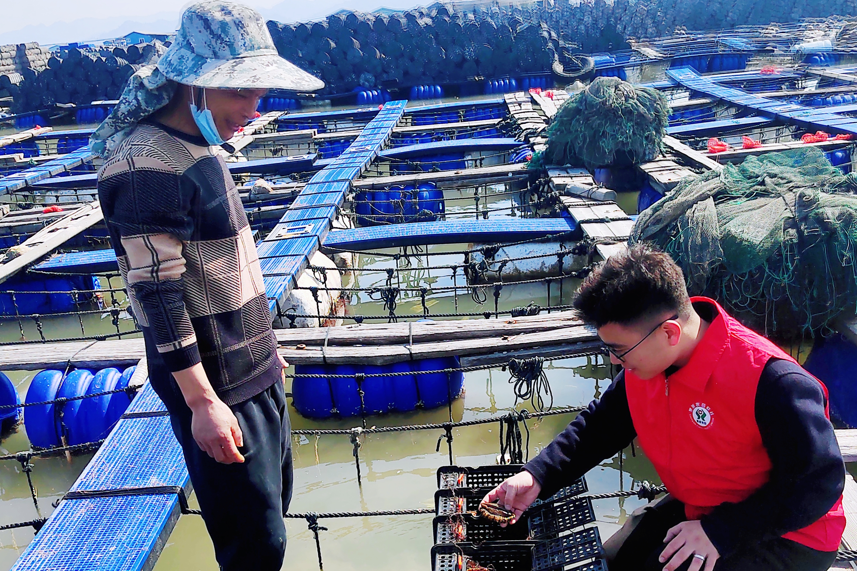 罗源农信联社金融助理在鉴江渔排调研 (林楠 摄)